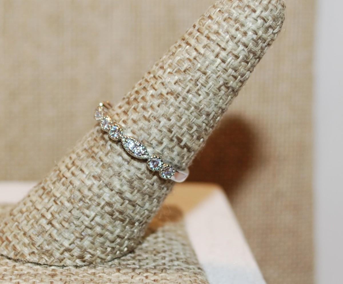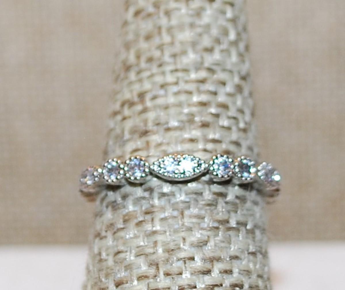 Size 7¼ Delicate Alternating Oval and Round Stones Ring on a Silver Tone Band (1.8g)