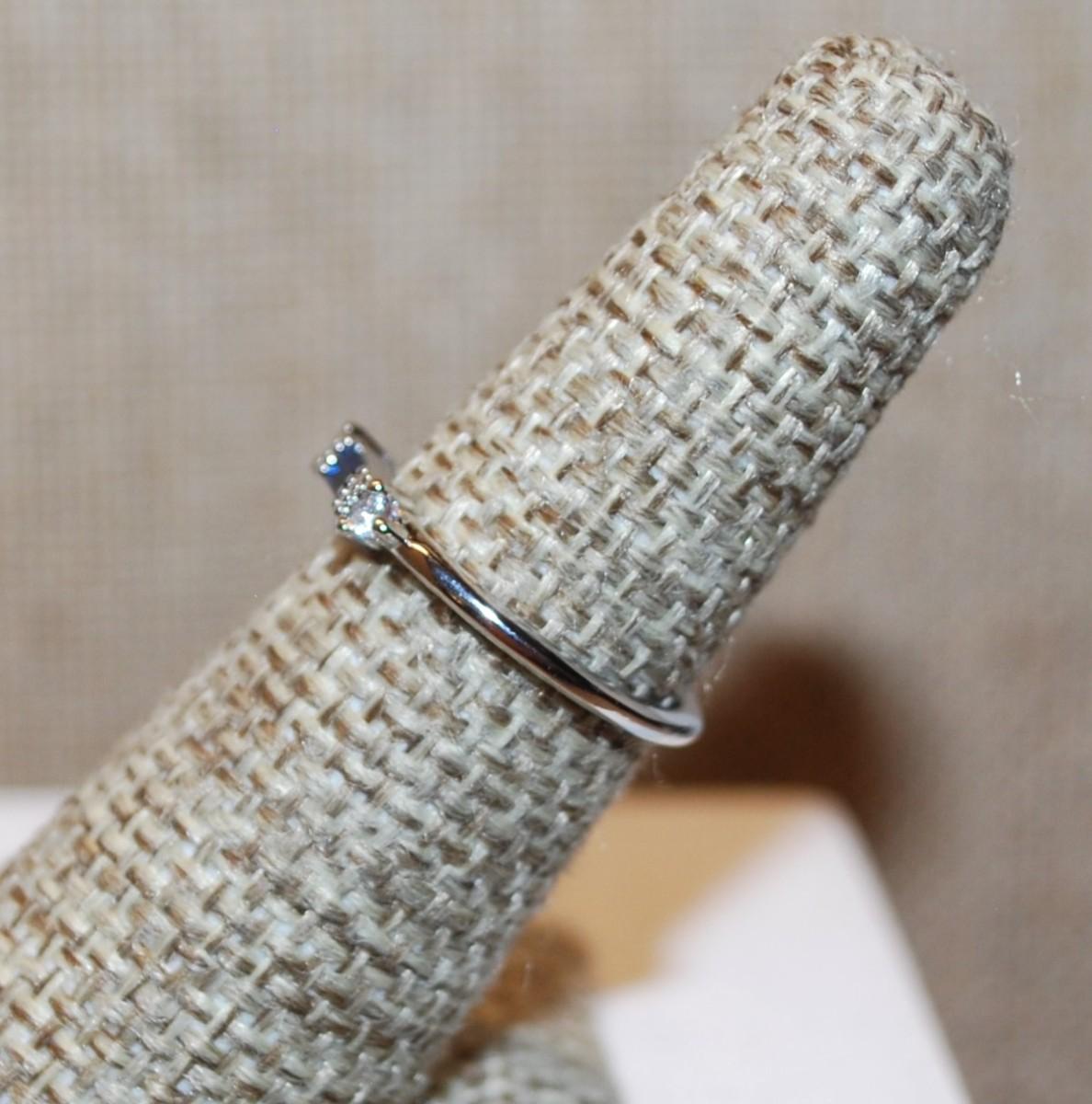 Size 7¾ Delicate Blue Rectangle Stone Ring & Accents on a Silver Tone Band (0.8g)