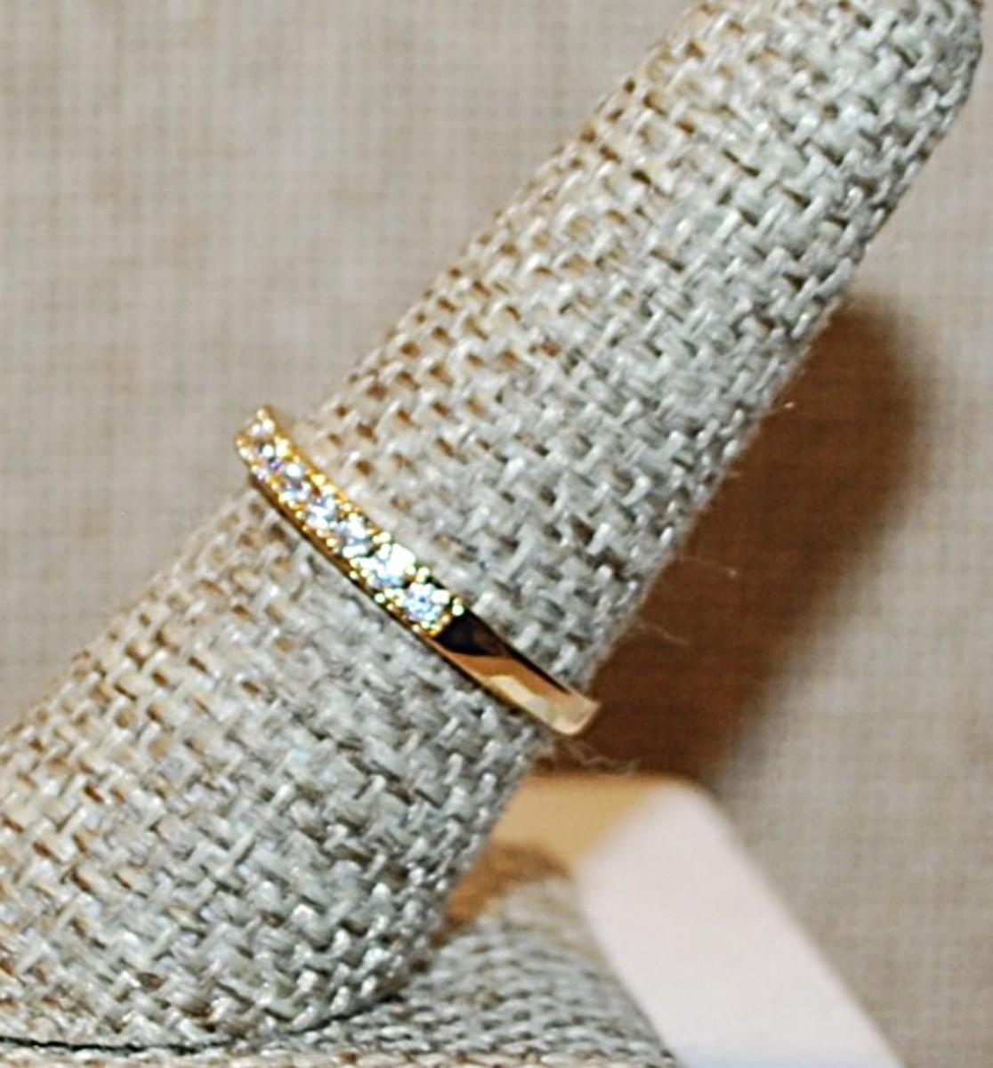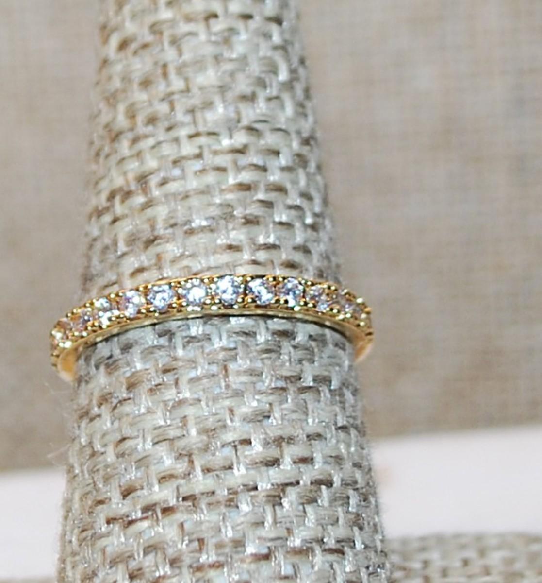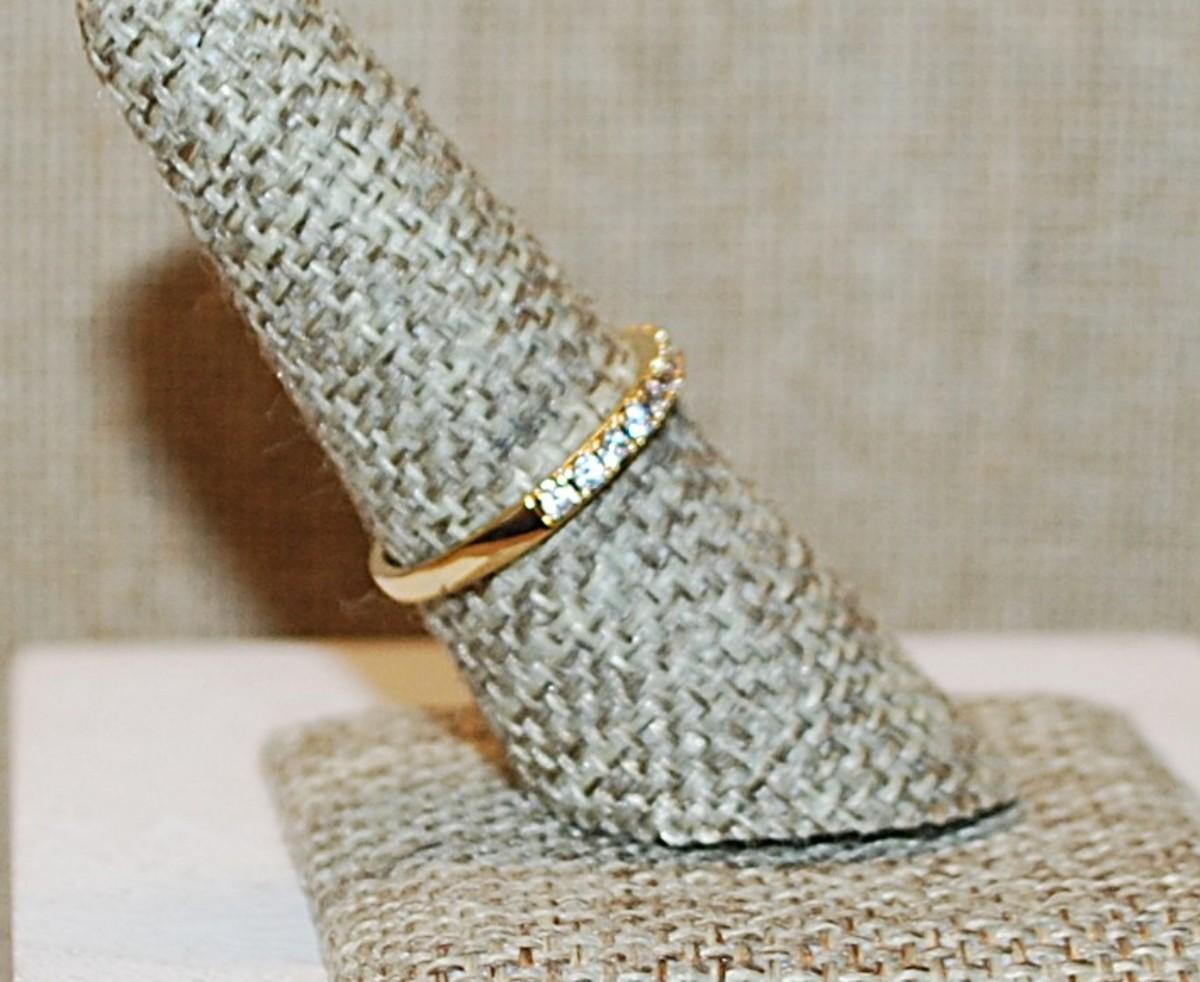 Size 7½ Delicate Half Infinity Style Ring with Tiny Clear Stones on a Gold Tone Band (1.5g)
