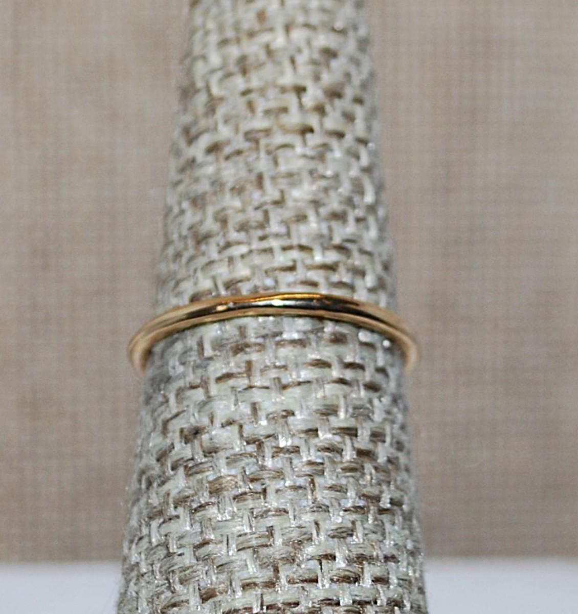 Size 7 Delicate Horizontal Clear Stone & 2 Round GREEN Stones on a Gold Tone Band (1.2g)