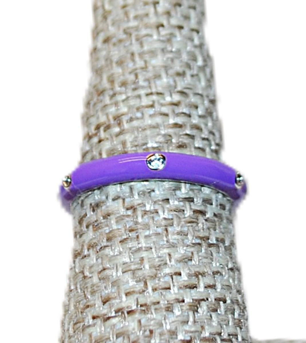 Size 7 Delicate LAVENDER Ring with 6 Accent Clear Stones on a Silver Tone Band (2.2g)