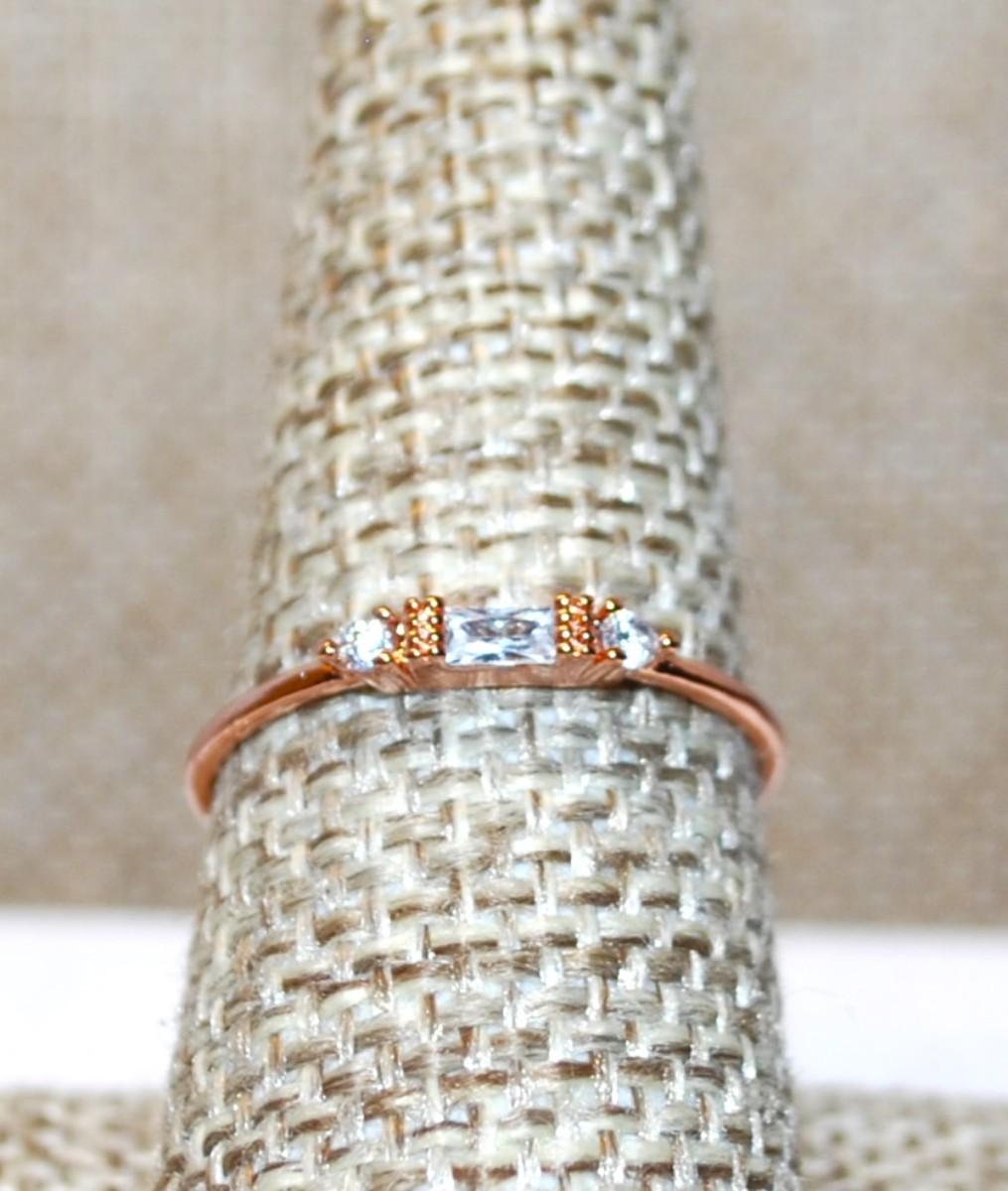 Size 7½ Delicate Rose Gold Clear Rectangle Stone Ring & Side Accents on a Rose Gold Band (0.9g)