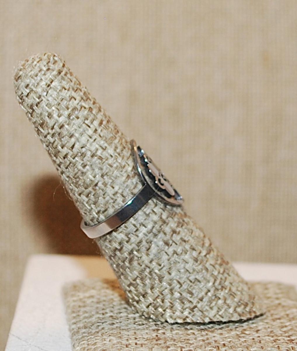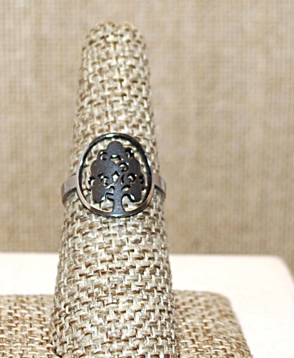 Size 7 Delicate STAINLESS STEEL Ring with "TREE DESIGN" on a Silver Colored Band (1.7g)