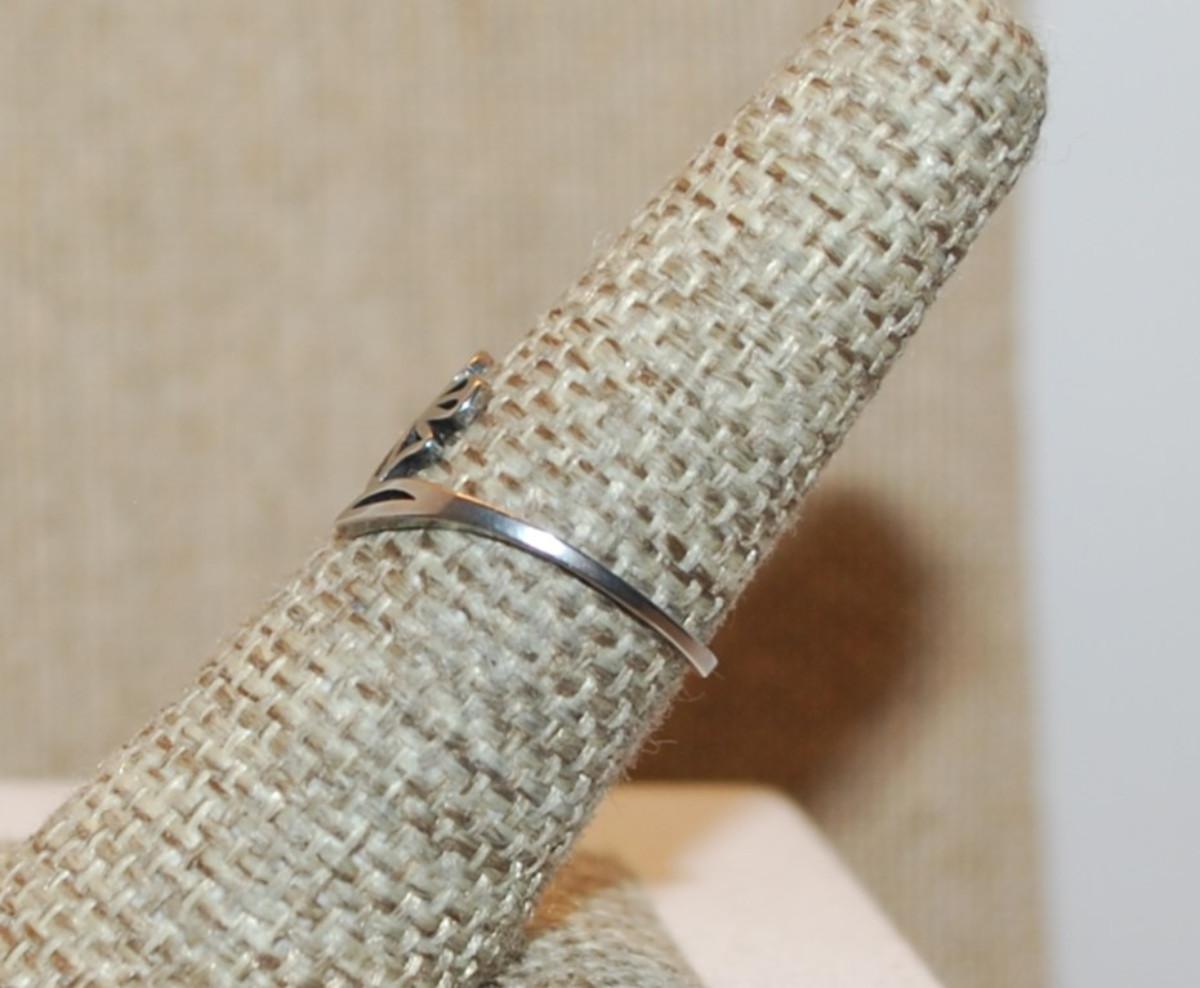 Size 7 Delicate STAINLESS STEEL Ring with "FLOWER DESIGN" on a Silver Colored Band (0.8g)