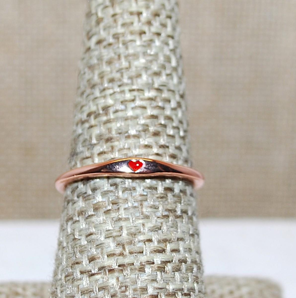 Size 7 ¼ Delicate TINY Enamel RED HEART Infinity-Style Ring on a Rose Gold Band (1.2g)