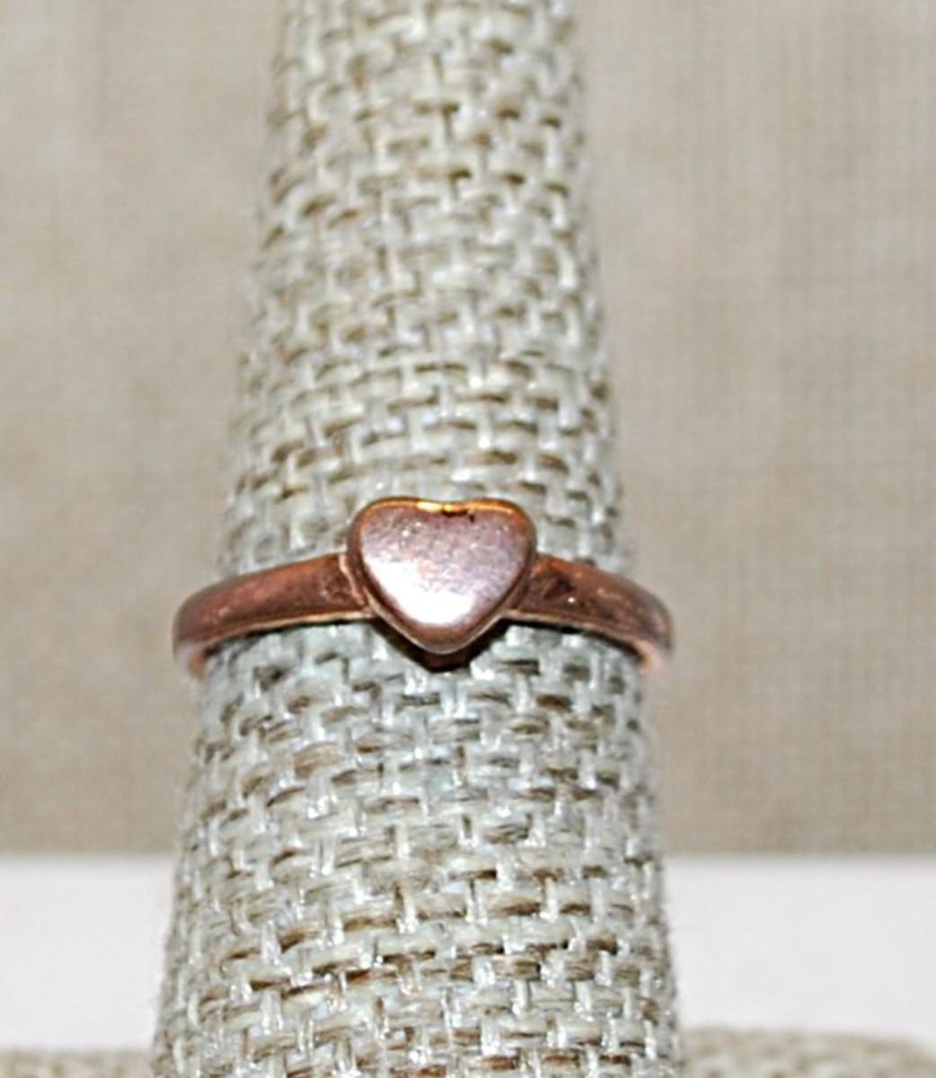 Size 7 Delicate VINTAGE Copper Colored No-Stones Ring & Solid HEART on a Copper Colored Band (1.8g)