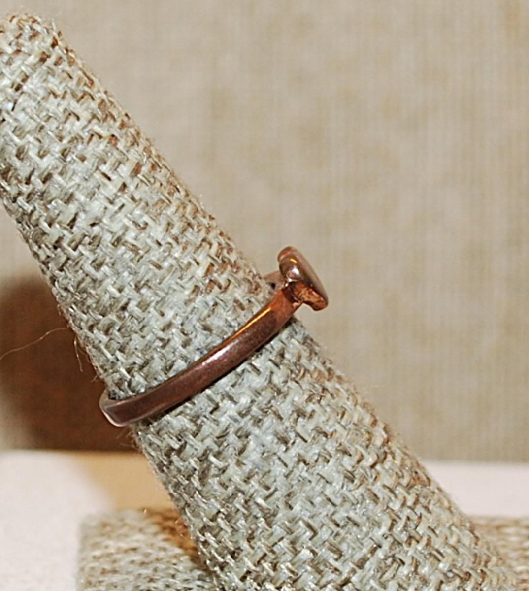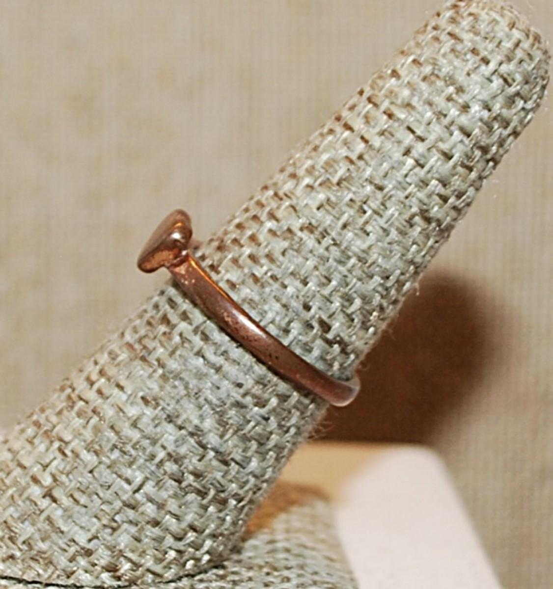 Size 7 Delicate VINTAGE Copper Colored No-Stones Ring & Solid HEART on a Copper Colored Band (1.8g)