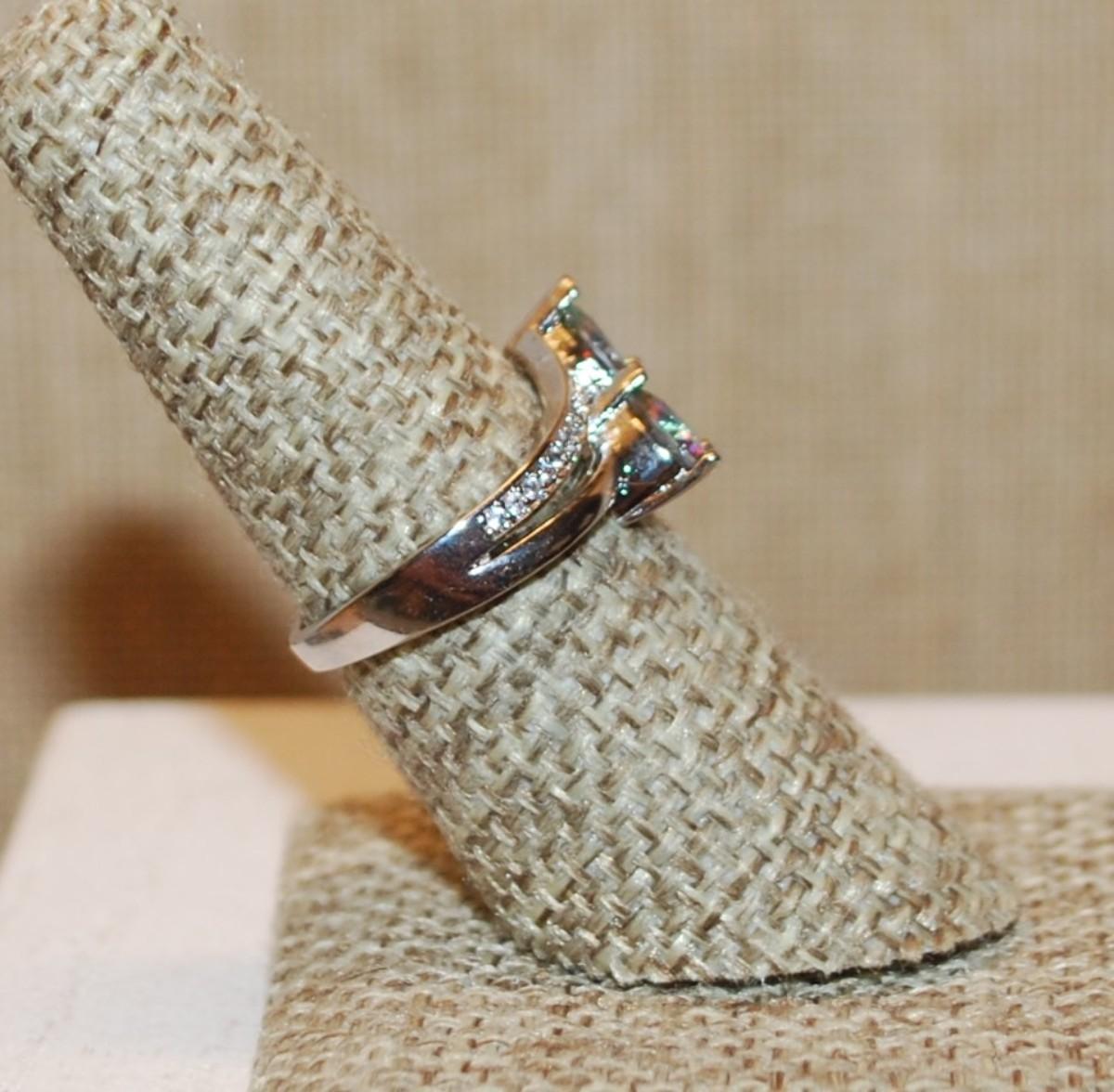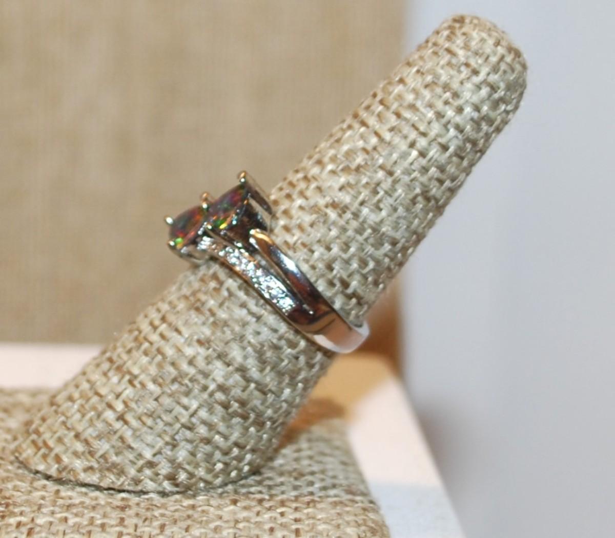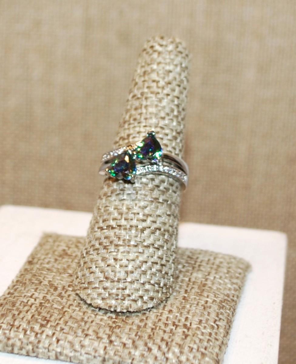 Size 7½ Double Iridescent Blue & Green HEARTS Ring on a Silver Tone Band (3.5g)