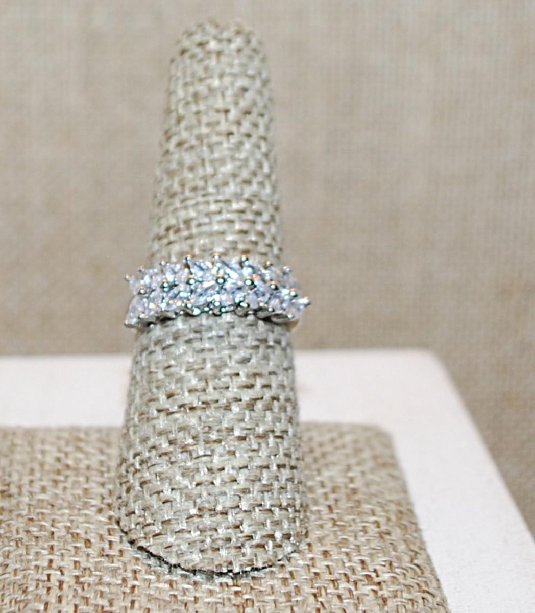 Size 7½ Double Rows Clear Angled Marquise Cut Stones Ring on a Silver Tone OPEN Band (2.8g)