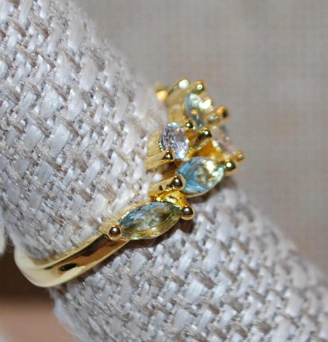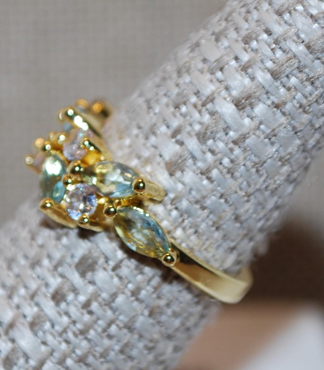 Size 7¼ Double Tiered Setting with Staggered Stone Assortment Ring on a Gold Tone Band (3.0g)
