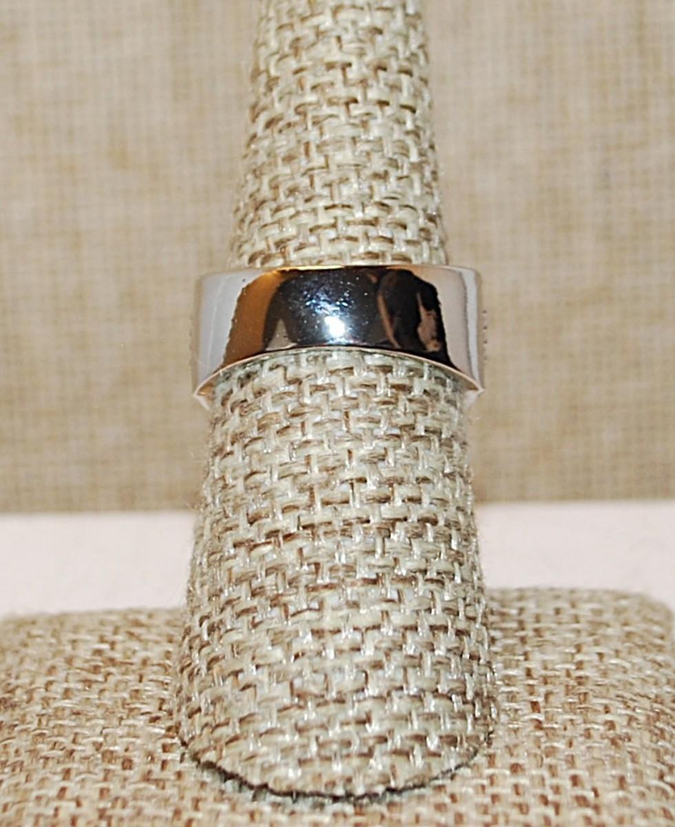 Size 7 Flashy Brilliant Shiny Party Ring with Square Main Stones and 4 Rows of Accent Stones on a Solid Silver Tone Band (8.8g)
