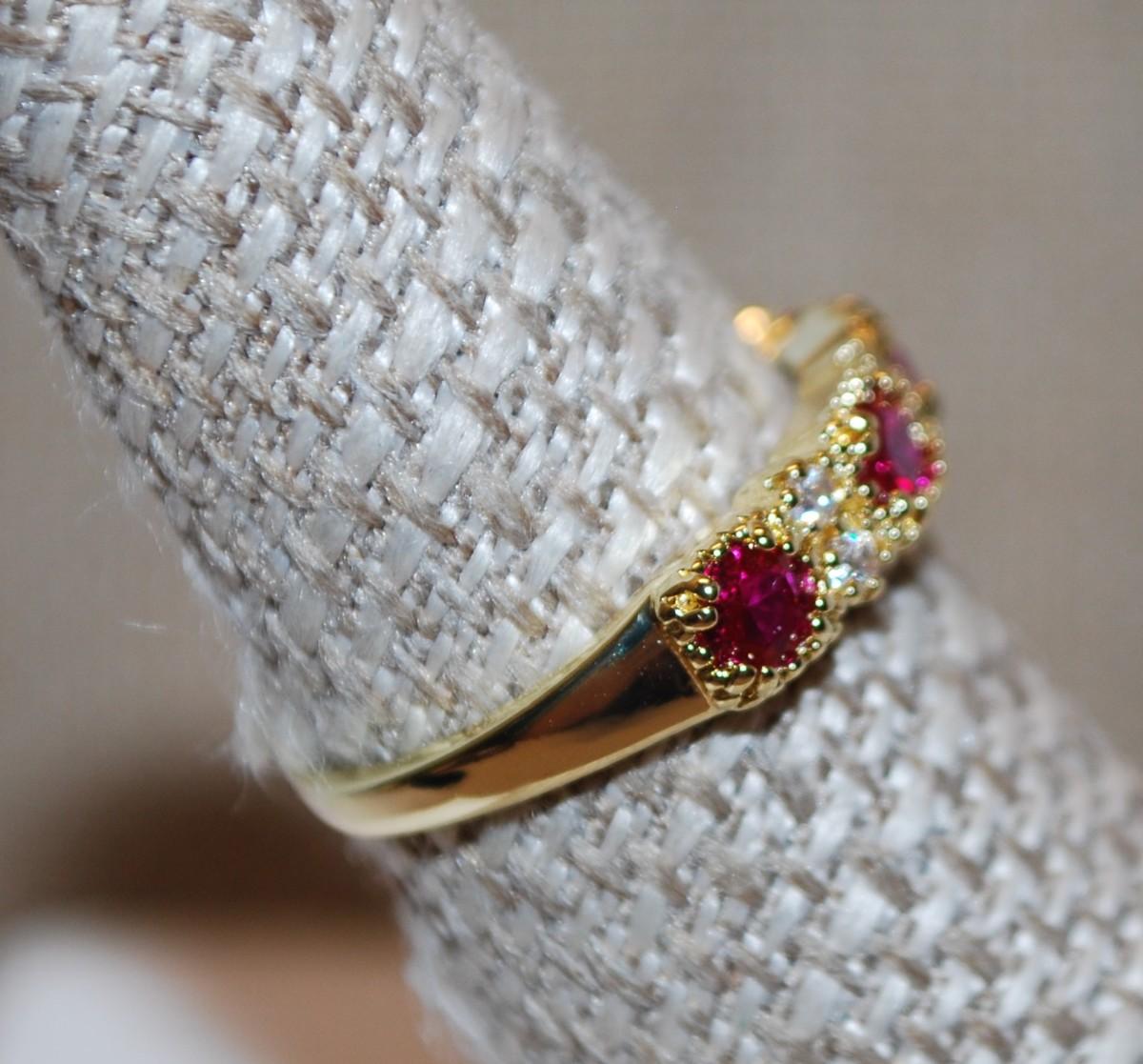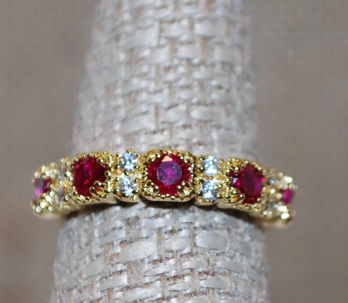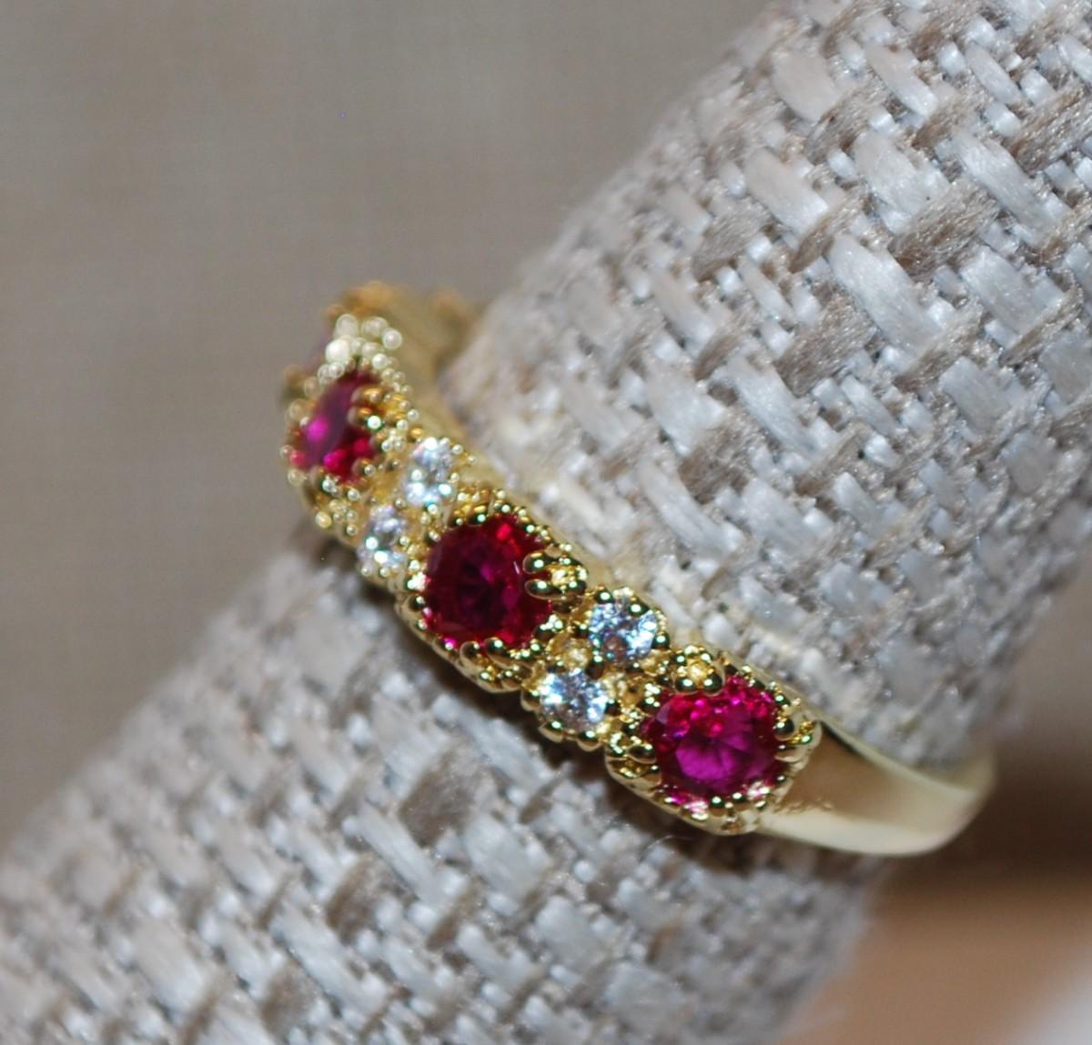 Size 7 Garnet Style Red Stones Ring with Accent Clear Stones on a .925 Silver Filled Band (2.8g)