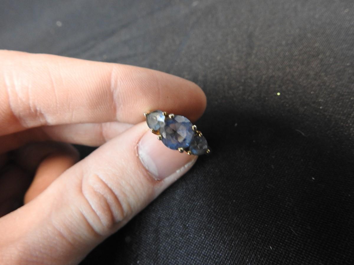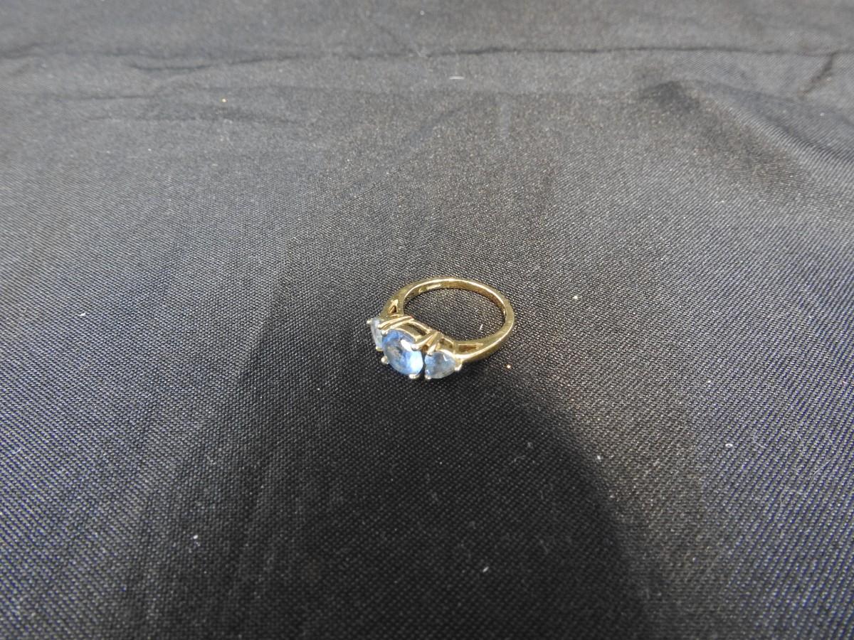 Size 7 Gold Plated Sterling Silver Ring With 3 Blue Stones