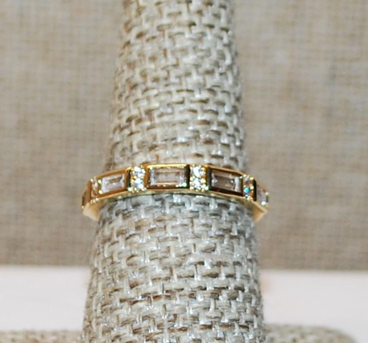 Size 7½ "Gold-Lined" Set of 5 Square Stones Ring with Clear Stones In Between on a Gold Tone Band (2.1g)