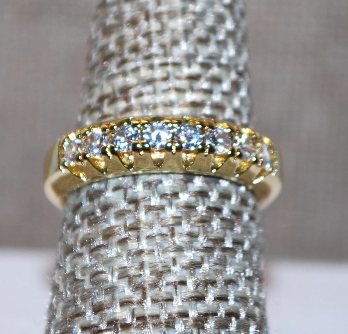 Size 7 Half Eternity Styled Ring with Clear Stones Row on a Gold Tone Band (4.4g)