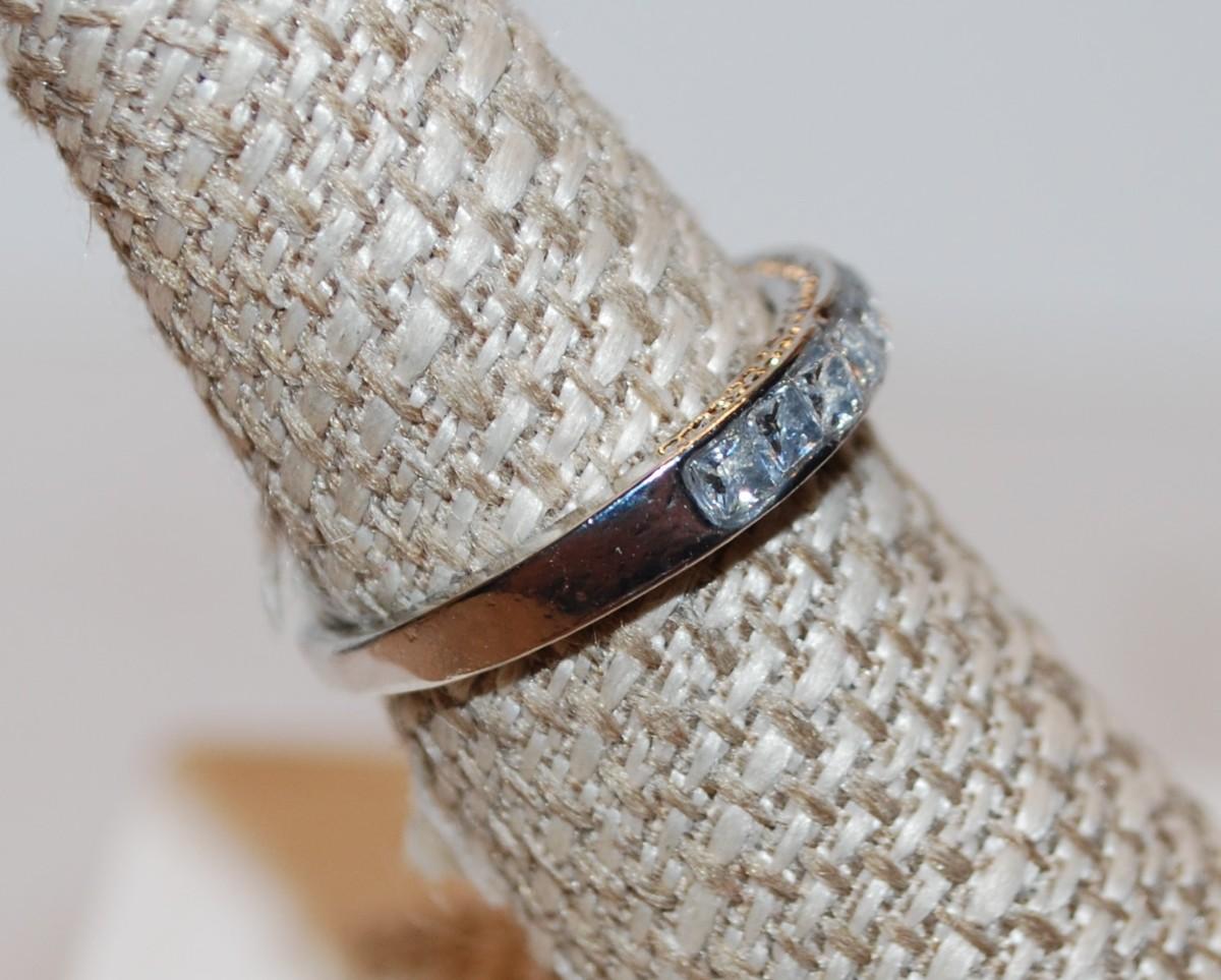 Size 7¼ Half-Eternity Clear-Stones Ring on a Silver Tone Band (3.0g)