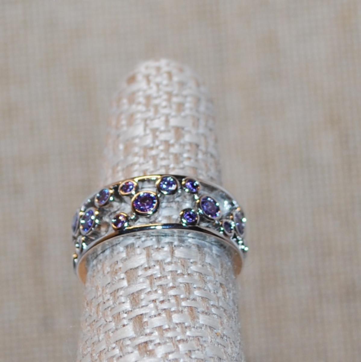 Size 7 Hollowed Infinity Style Setting Ring with Purple Stone "Circles" on a Silver Tone Band (4.6g)
