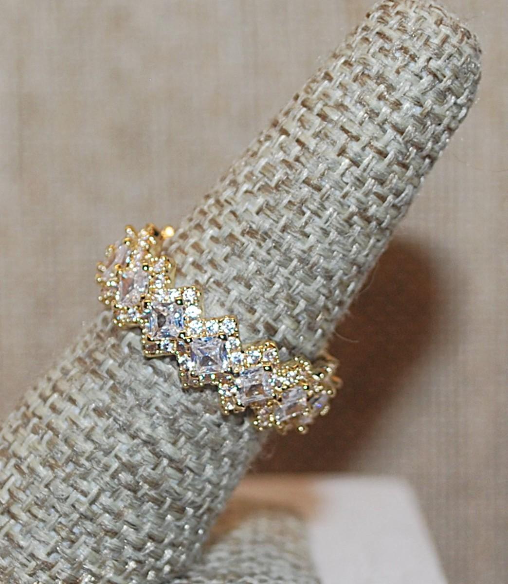Size 7 Infinity Ring with "Diamond Shape" Stones All Around on a Gold Tone Band (4.8g)