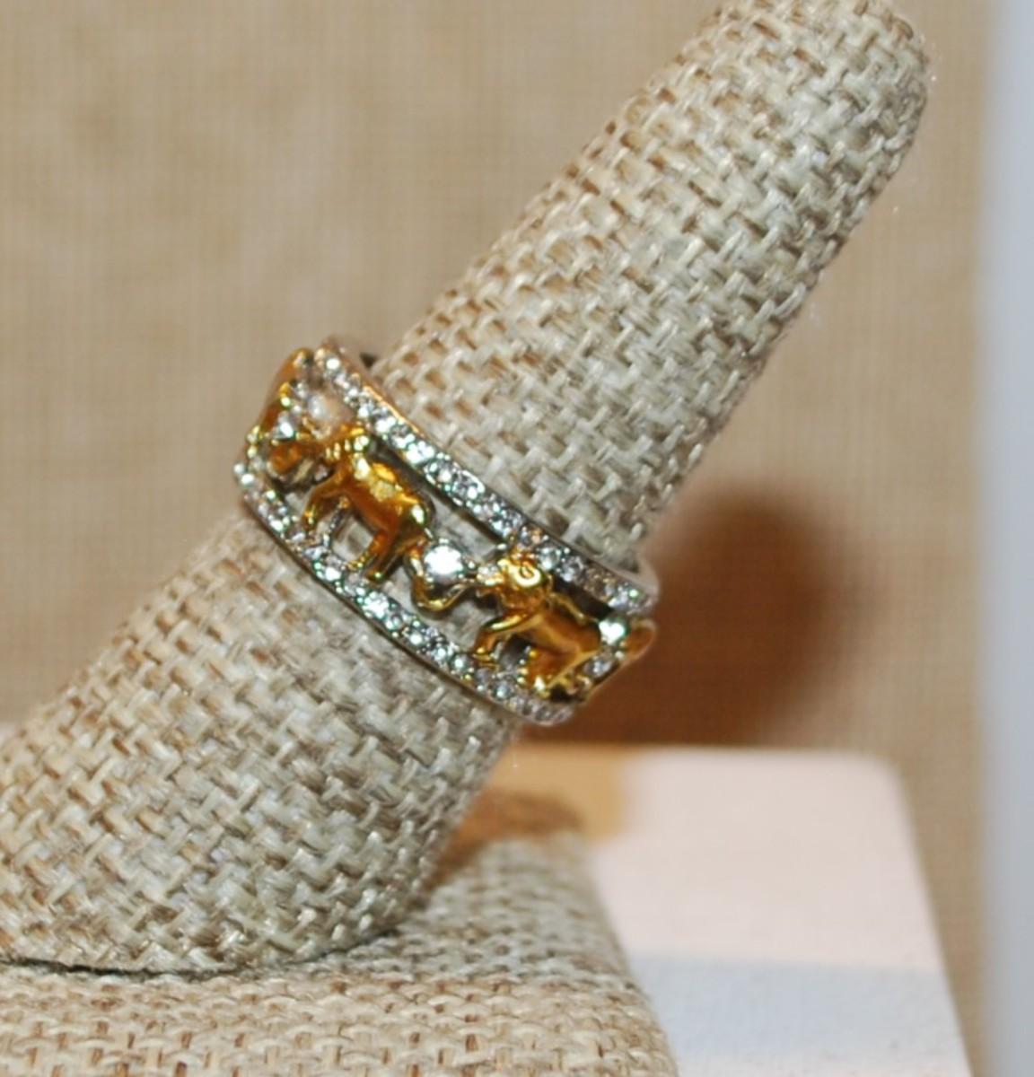 Size 7¾ Infinity Style 2-Tone Elephant Ring on a Silver Tone Band (4.4g)