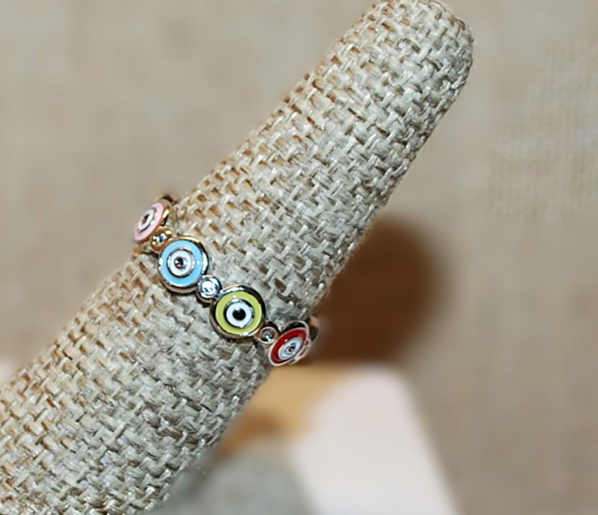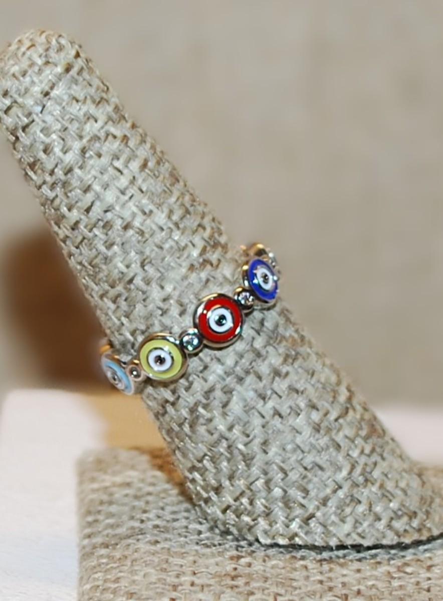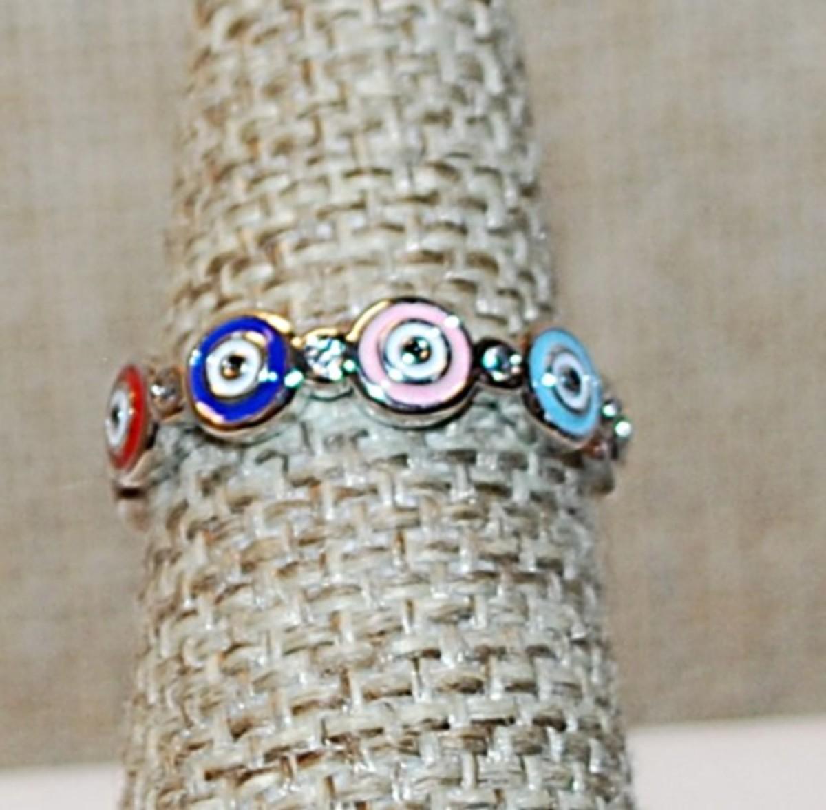 Size 7 Interesting Multicolor "Bullseye" Ring on a Silver Tone Band (2.8g)