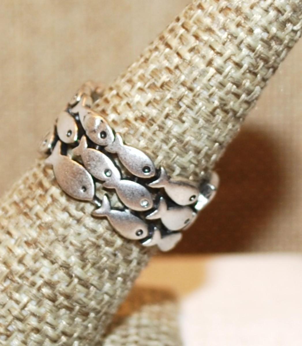 Size 7¼ Interesting "School of Fish" Infinity Style Ring on a Silver Tone Band (4.6g)