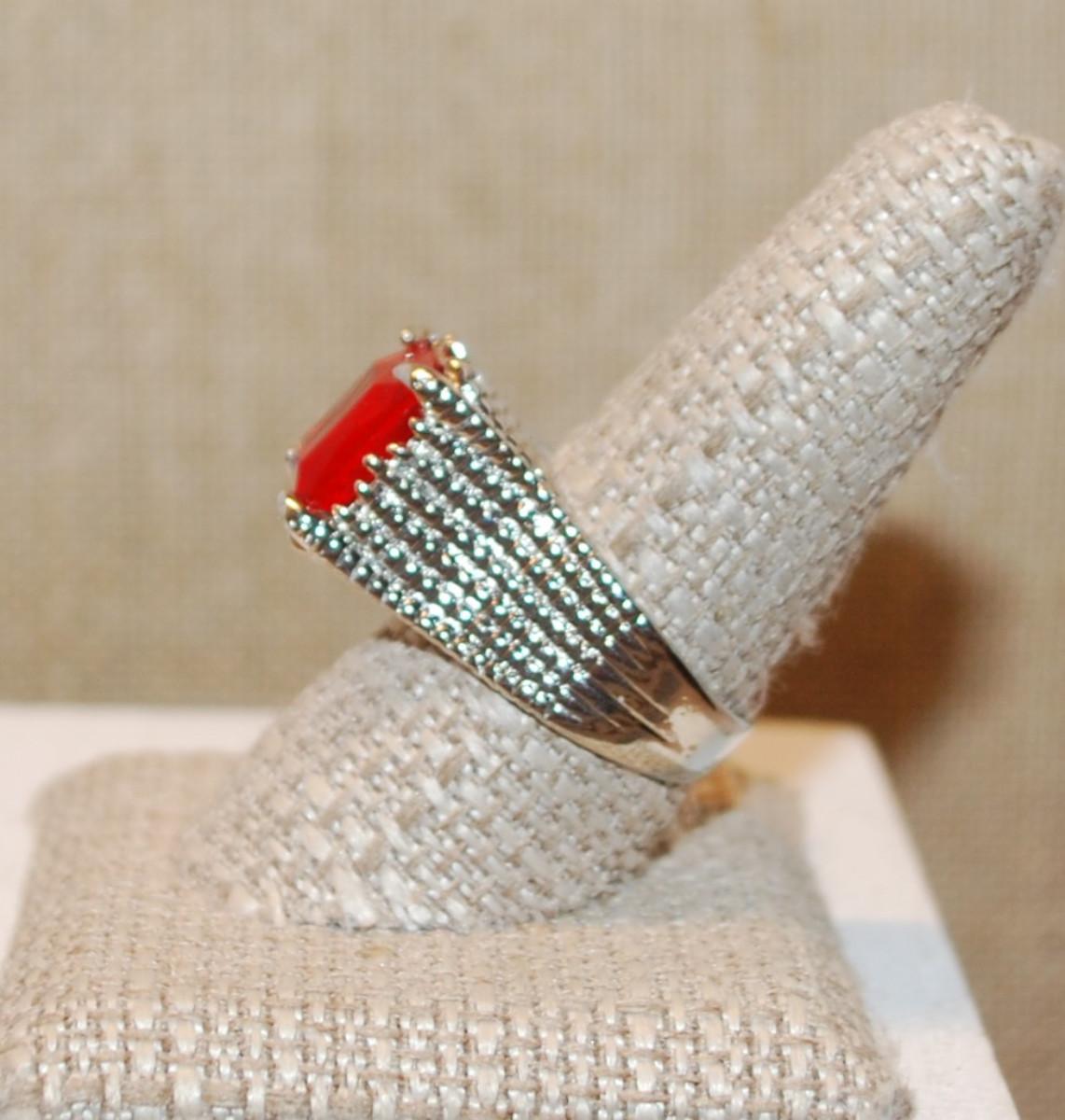 Size 7½ Large Bright Red Azure Cut Stone Party Ring on a Solid Silver Tone Band (10.3g)