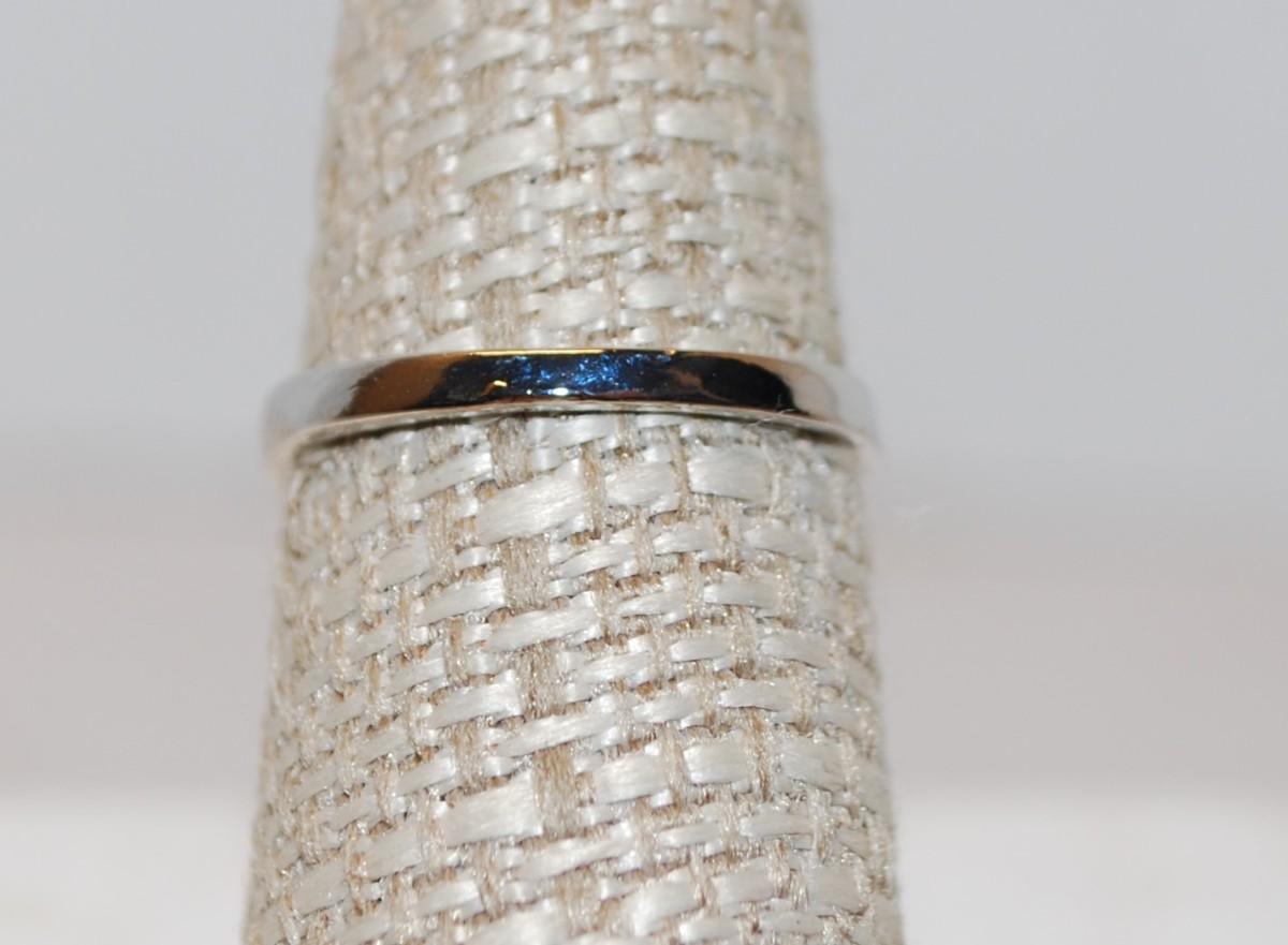 Size 7¼ Large Clear Blue Emerald Cut Stone Ring with 6 Tiny Accent Stones (5.1g)