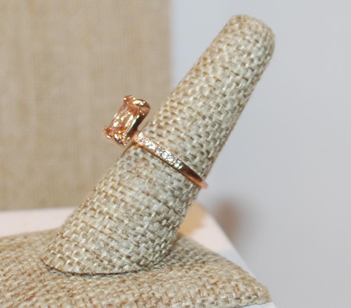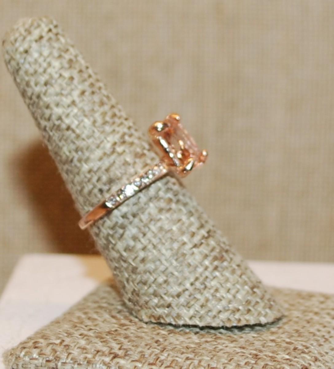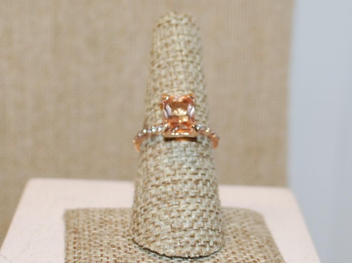 Size 7¼ Large Rectangle Champagne Colored Stone Ring & Side Accents on a Rose Gold Band (2.7g)