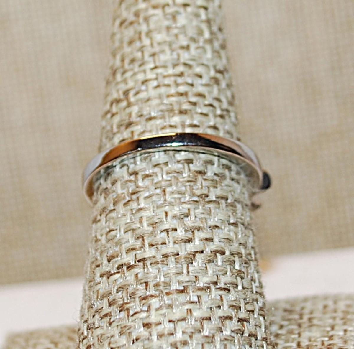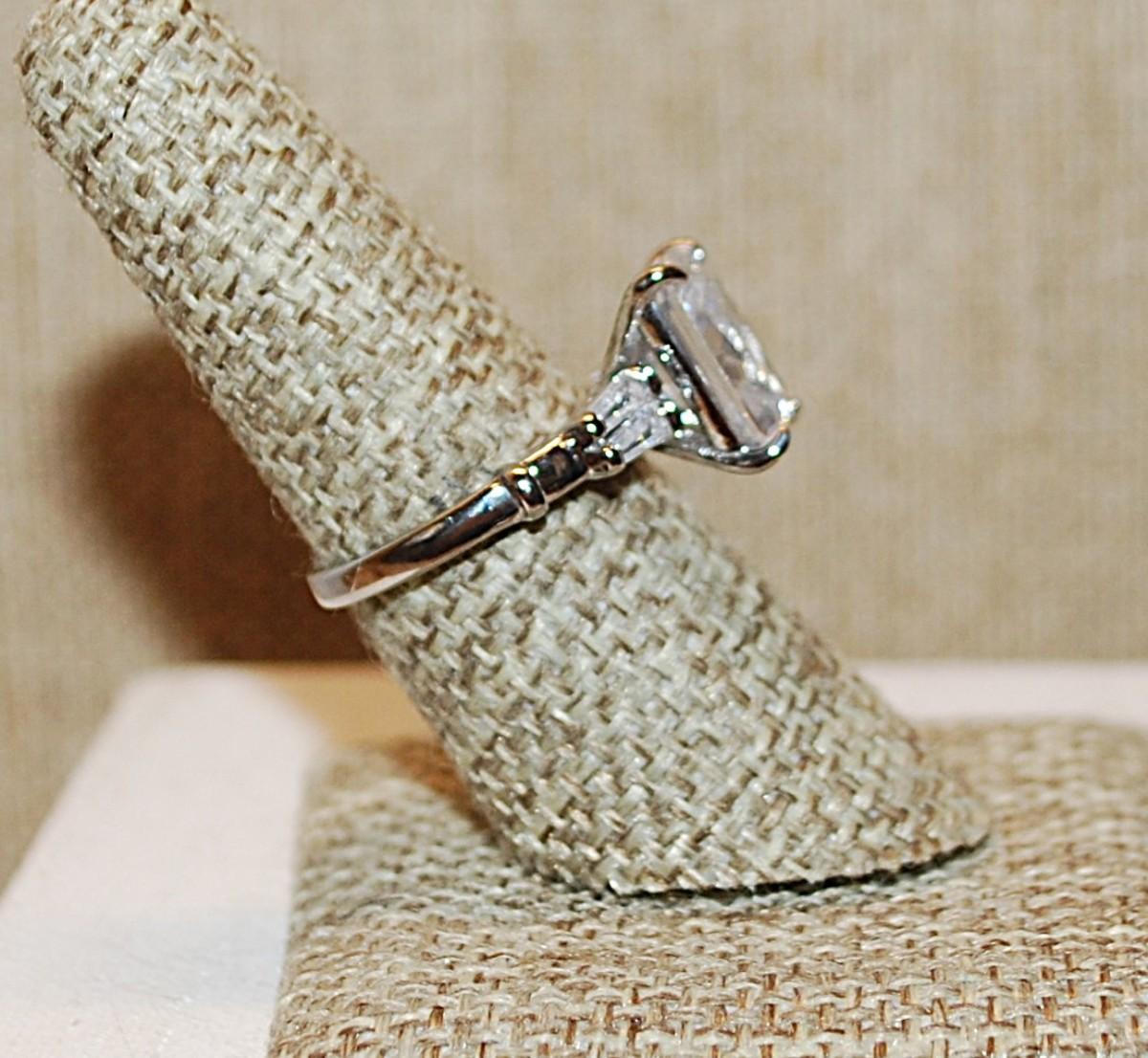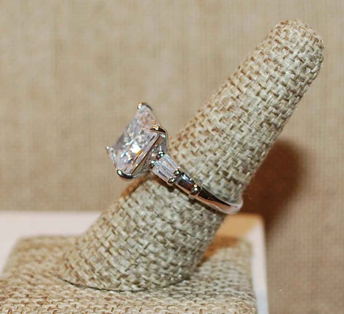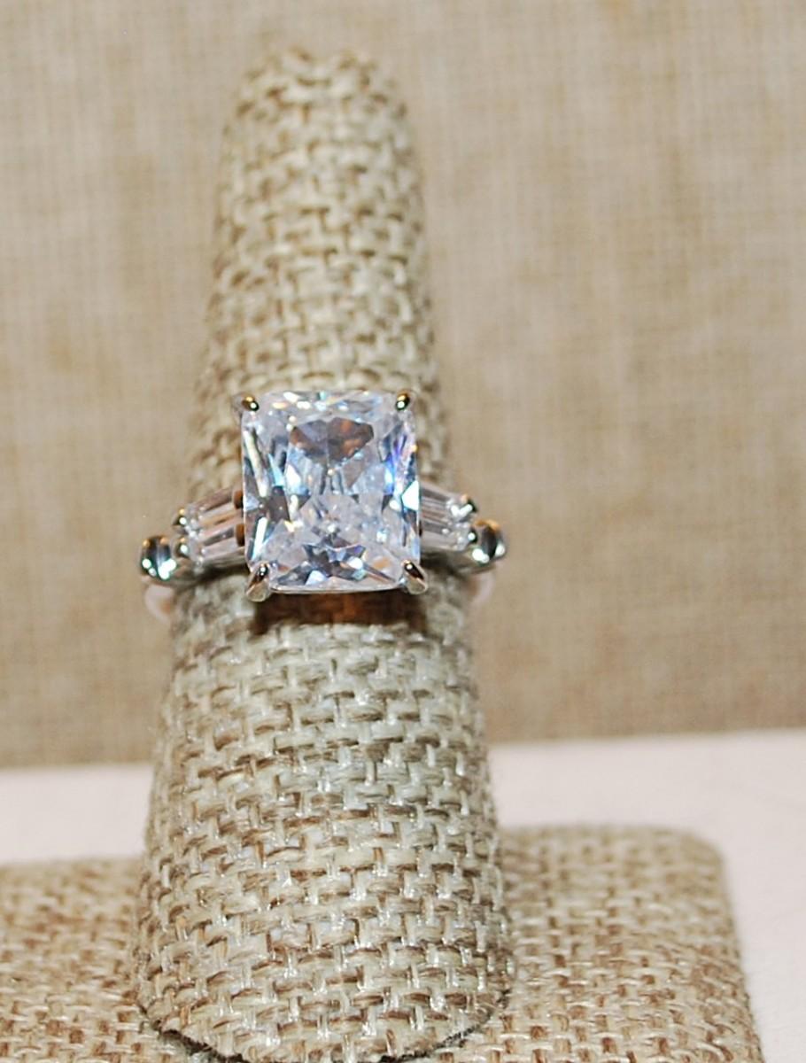 Size 7 Large Rectangle Clear Hi-Rise Stone Ring with Horizontal Side Panels on a Silver Tone Band (5.7g)