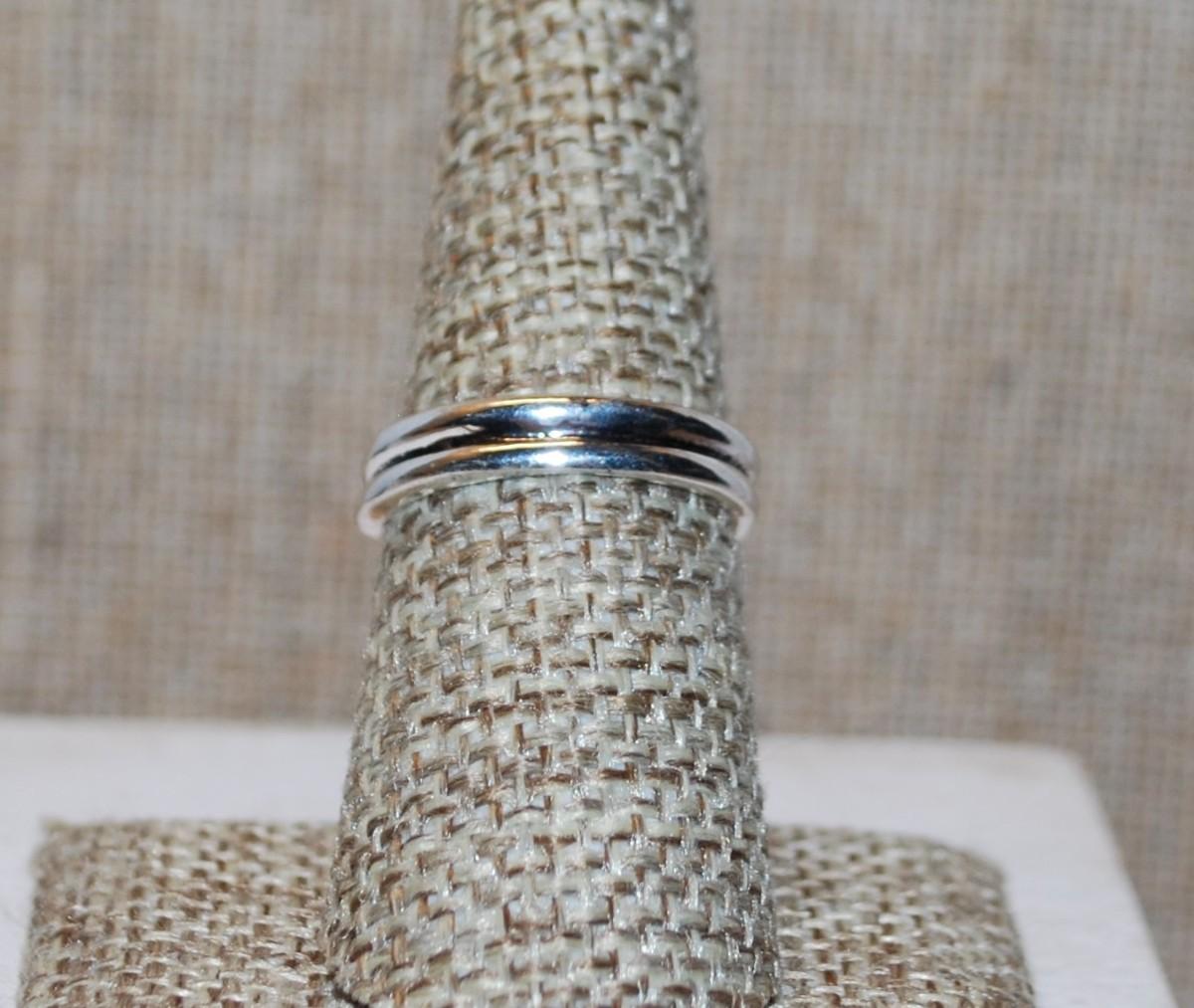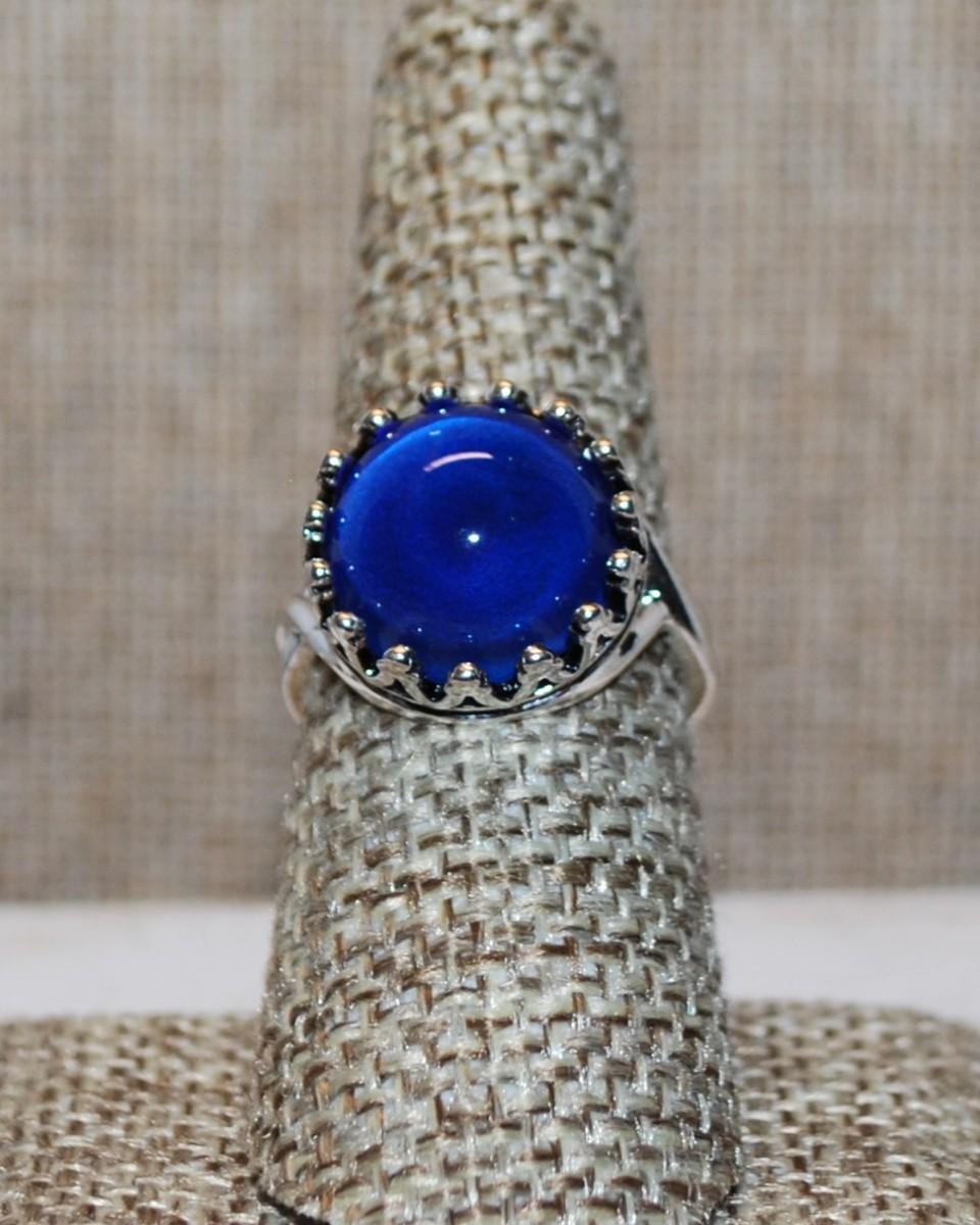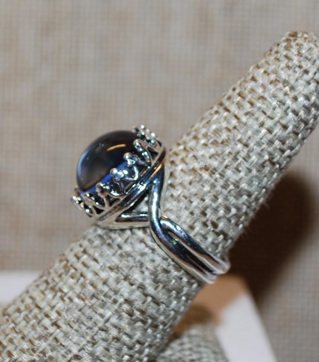 Size 7¼ Large Round Blue Stone Ring with a "Crown" Surround on a Silver Tone Band (6.4g)