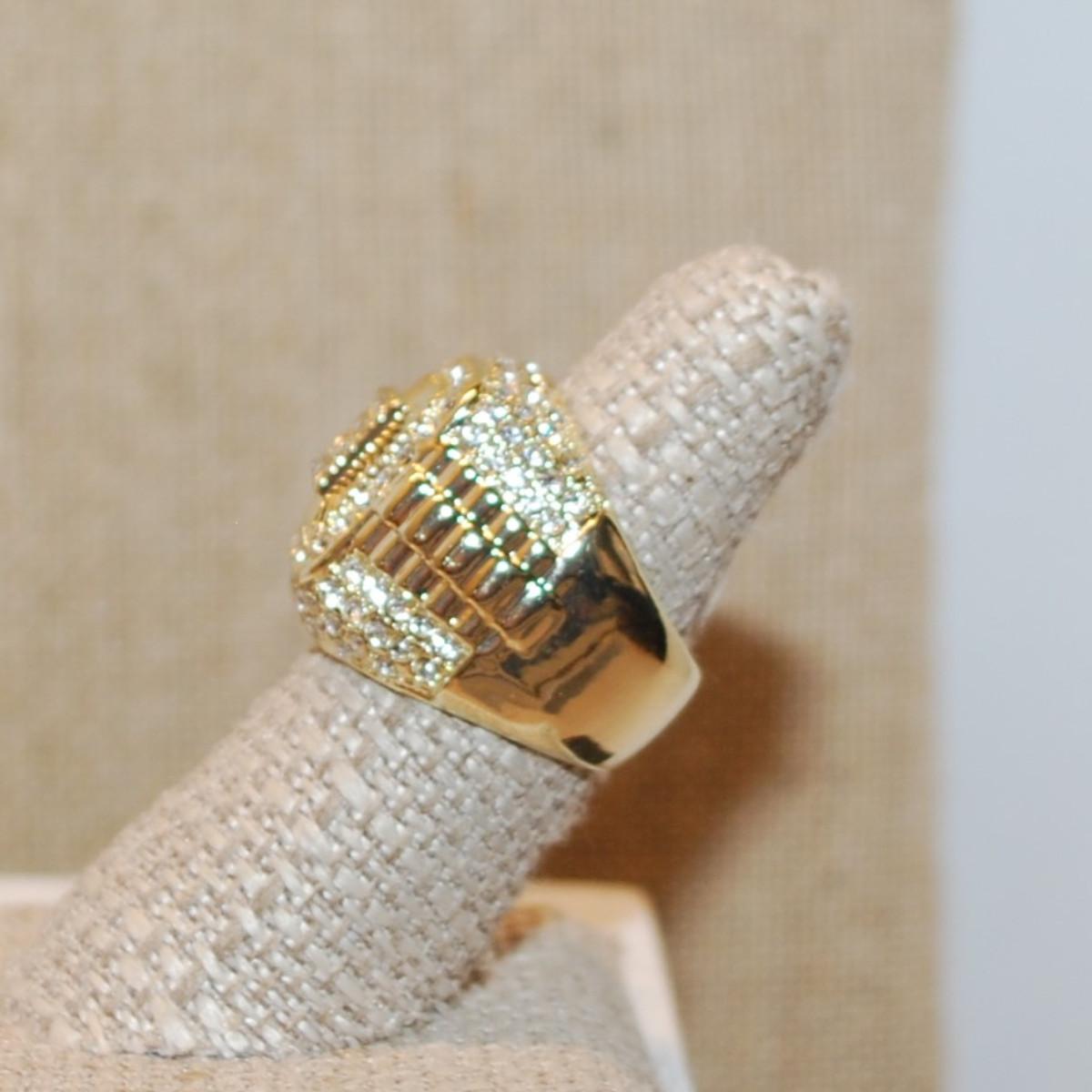 Size 7¼ Large Solid Brilliant Party Style Ring with Lots of Glitter on a Gold Tone Band (17.1g)