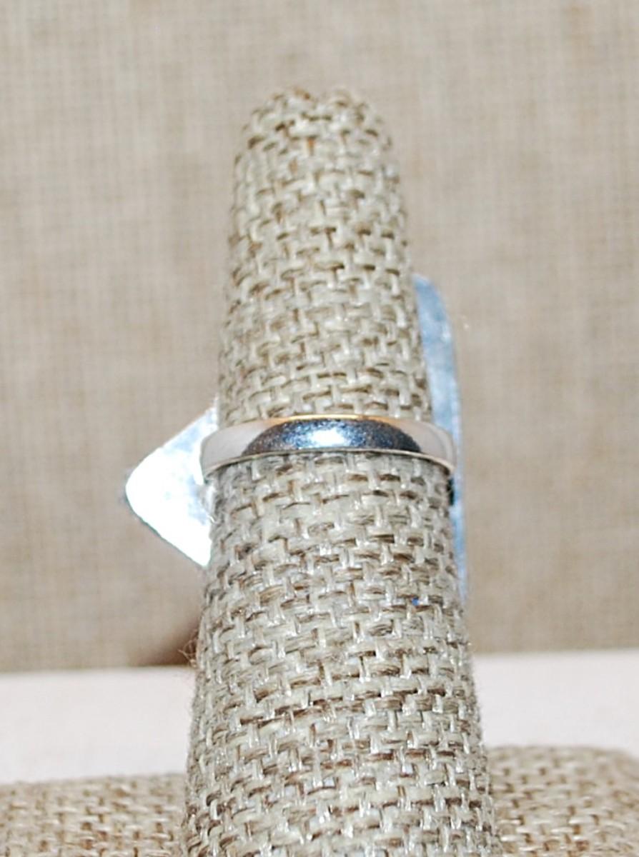 Size 7 Large Triangle Shaped Opaque WHITES & GRAYS Colored AGATE Gemstone with Line/Globes Surround on a Silver Tone Band (10.5g)