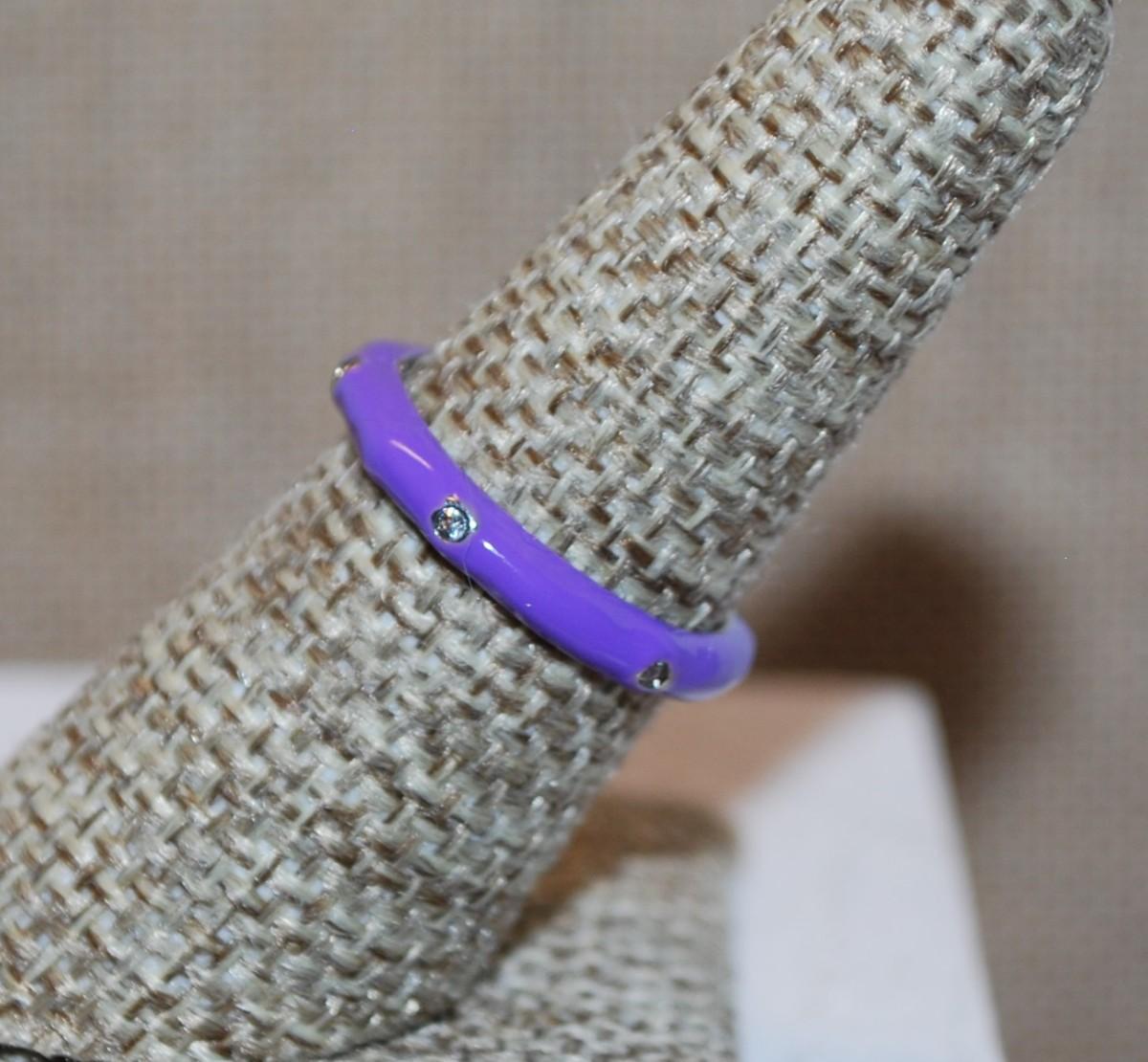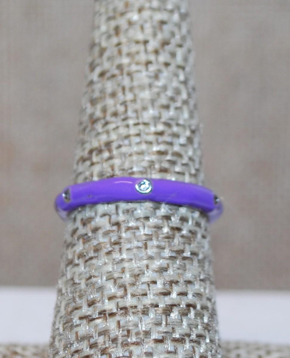 Size 7 LAVENDER Enamel Ring with 6 Rhinestones Around the Band (2.1)