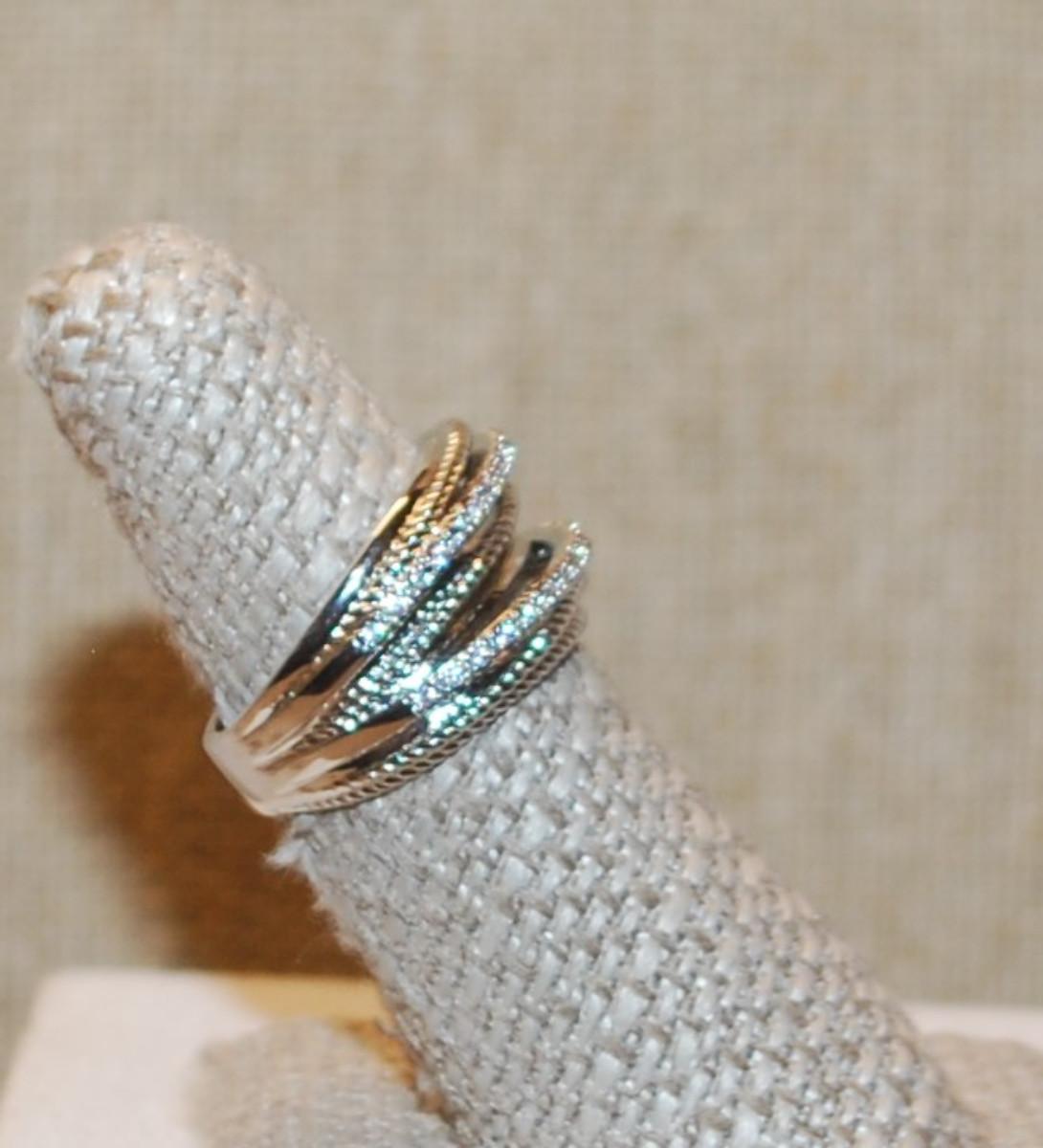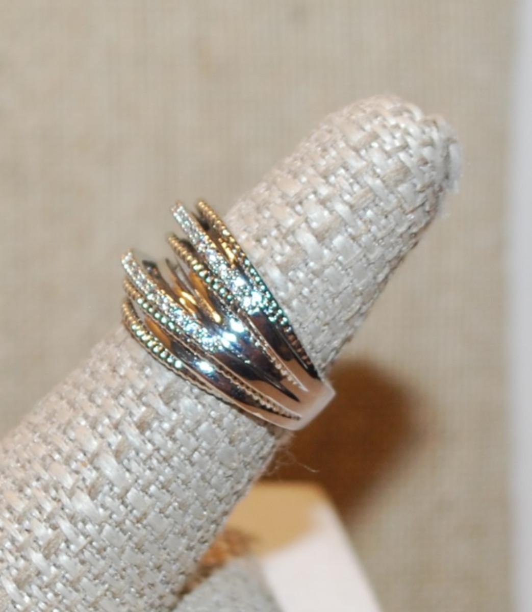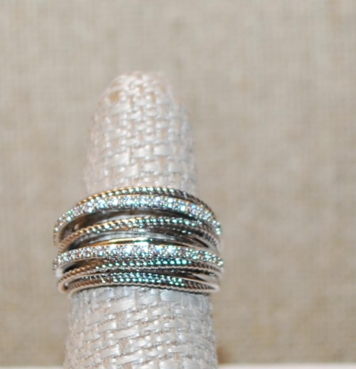 Size 7 Layered Overlapping "Ropes & Stones" Style Ring on a Silver Tone Band (6.4g)