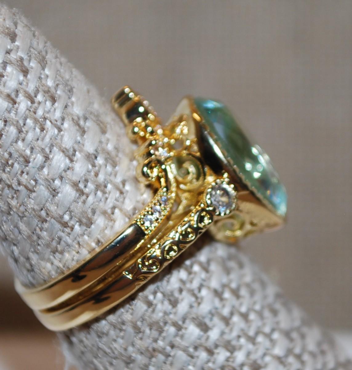 Size 7 Light Blue Oval Stone in a 2 Ring Set in Gold Tone (6.2g)