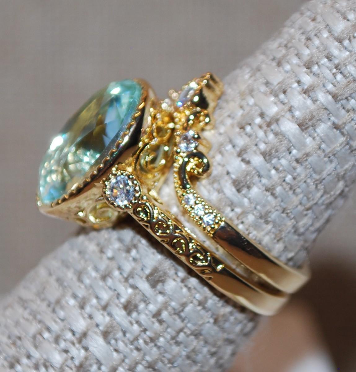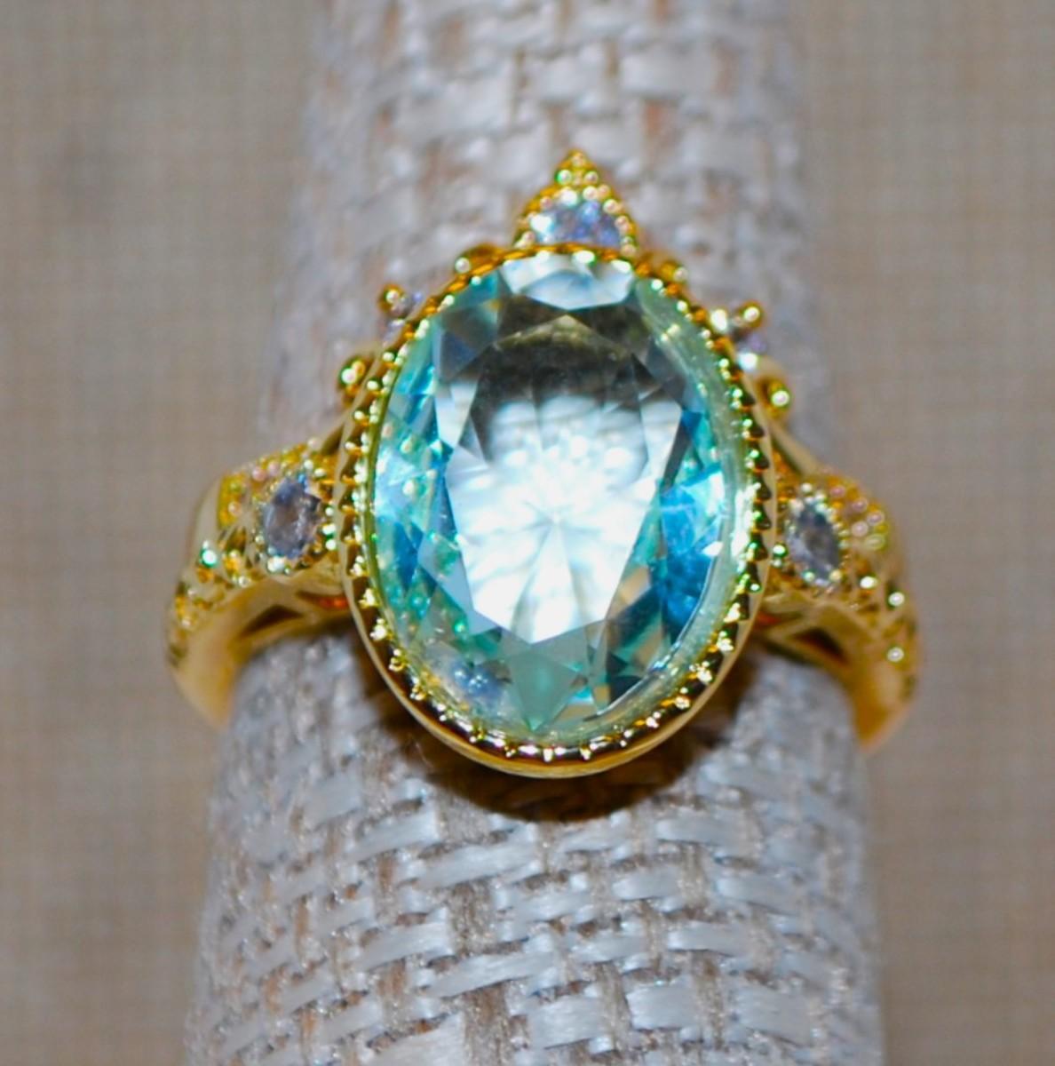 Size 7 Light Blue Oval Stone in a 2 Ring Set in Gold Tone (6.2g)
