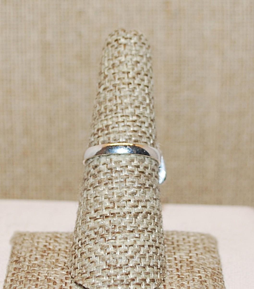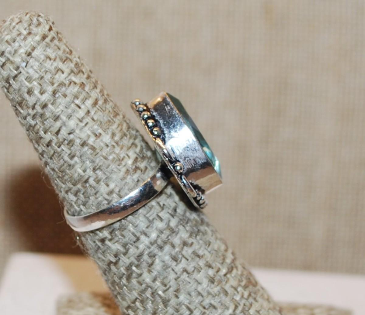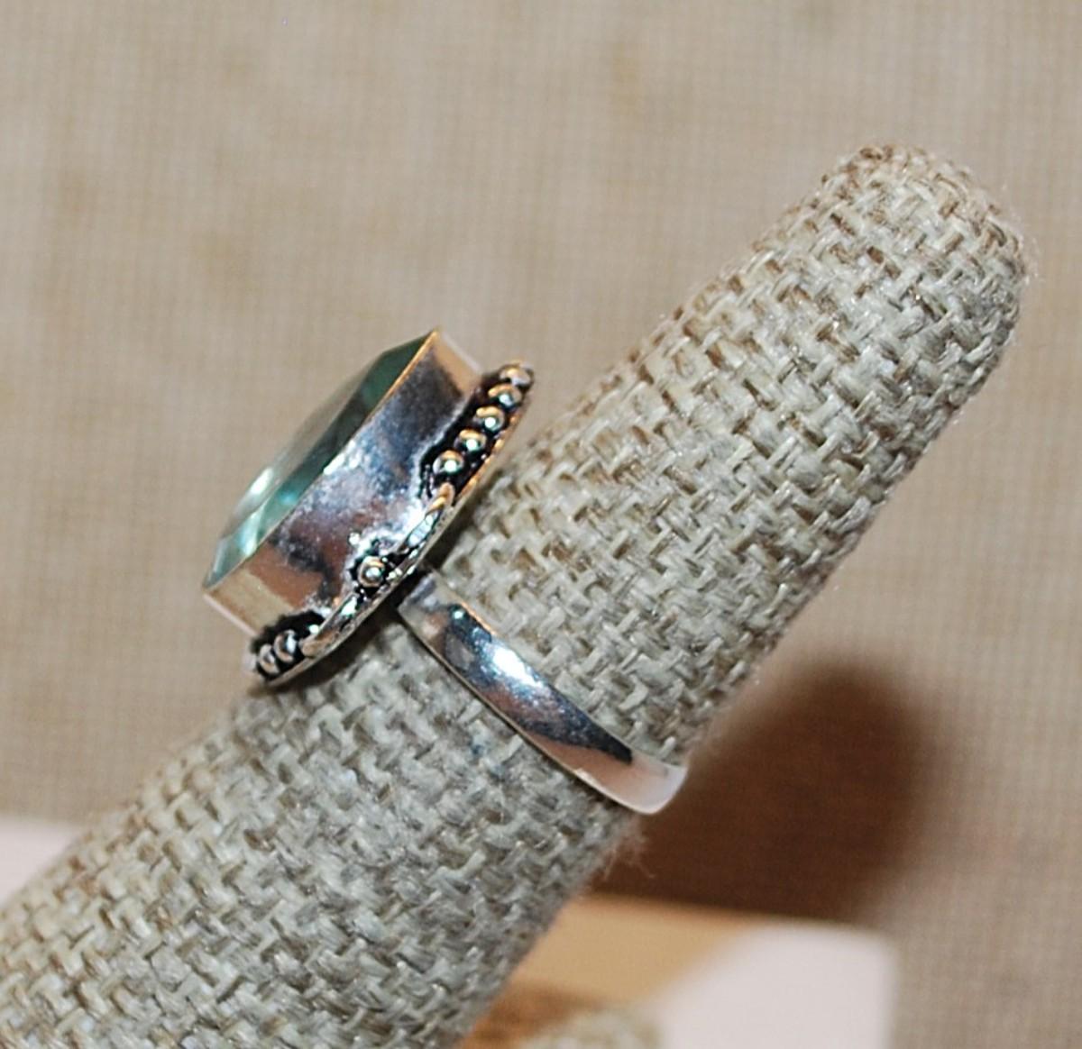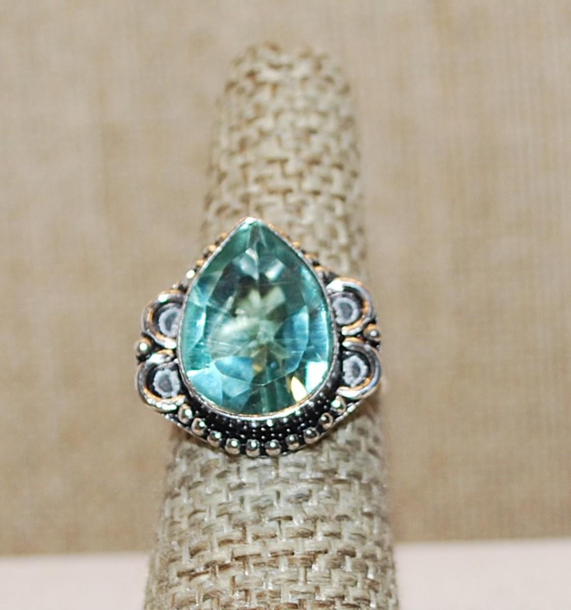 Size 7 Light GREEN Pear Shape Transparent Glass Rhinestone Ring with a 4 Loop Rim Setting on a Silver Tone Band (4.6g)
