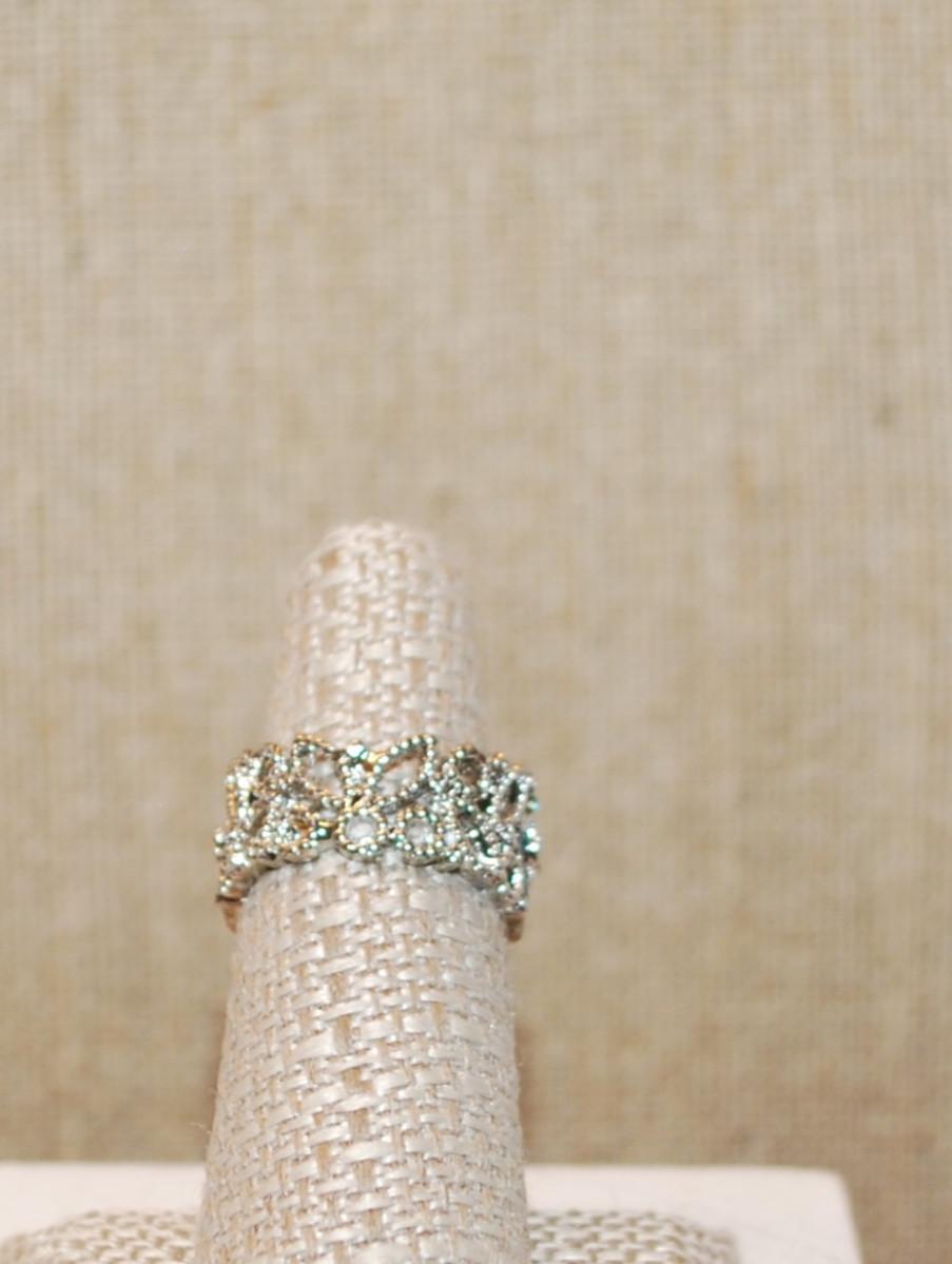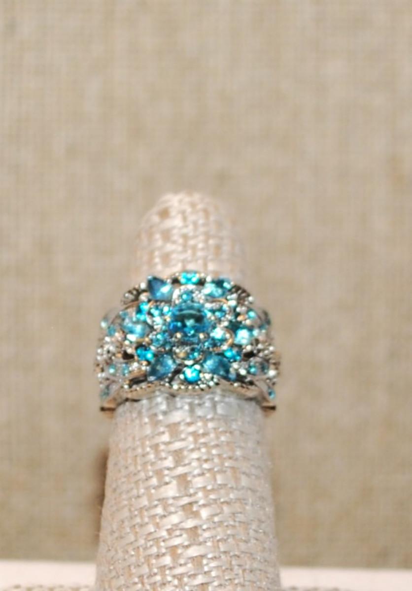 Size 7 Lots of Blue Stones Party Style Ring on a Hollowed Silver Tone Band (7.7g)