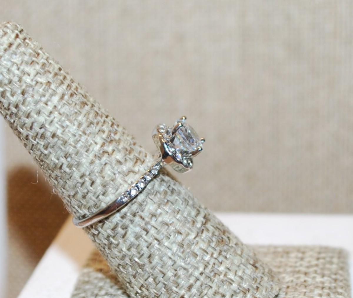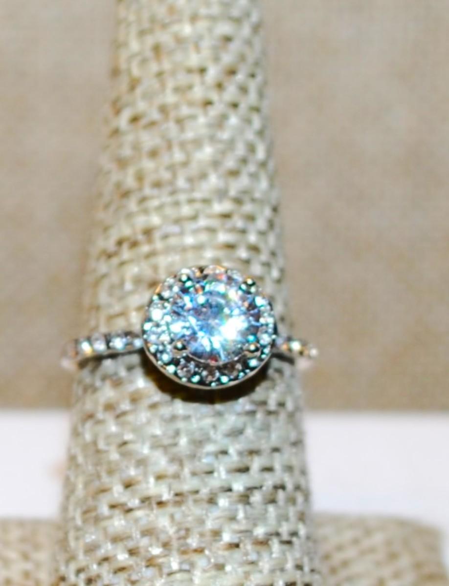 Size 7½ Main Clear Stone on a Circle of Accent Stones Ring on a Silver Tone Band (2.4g)