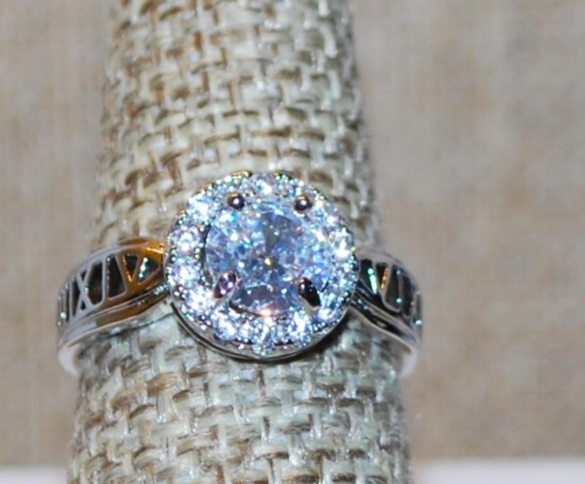 Size 7½ Marked .925 Brilliant 4 Prong Clear Round Main Stone with Circle Full Surrounds on a Silver Band (3.5g)