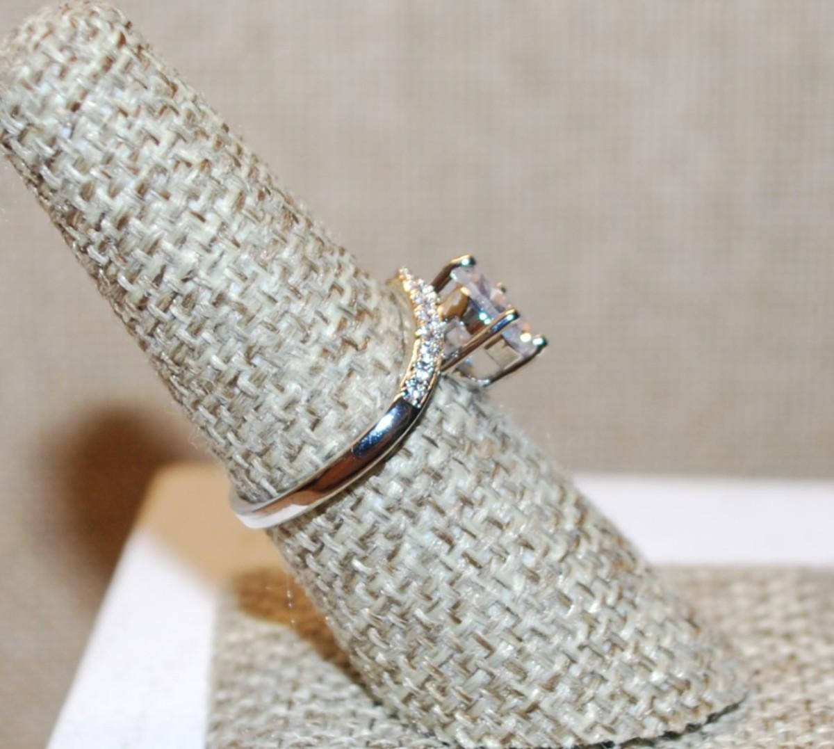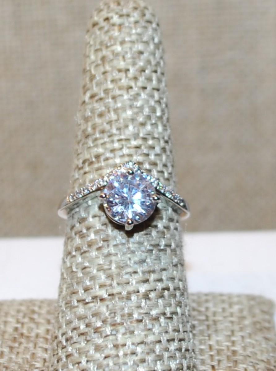 Size 7 Marked .925 Clear Round Stone Ring with a "V" Accent Crown on a Silver Band (3.2g)