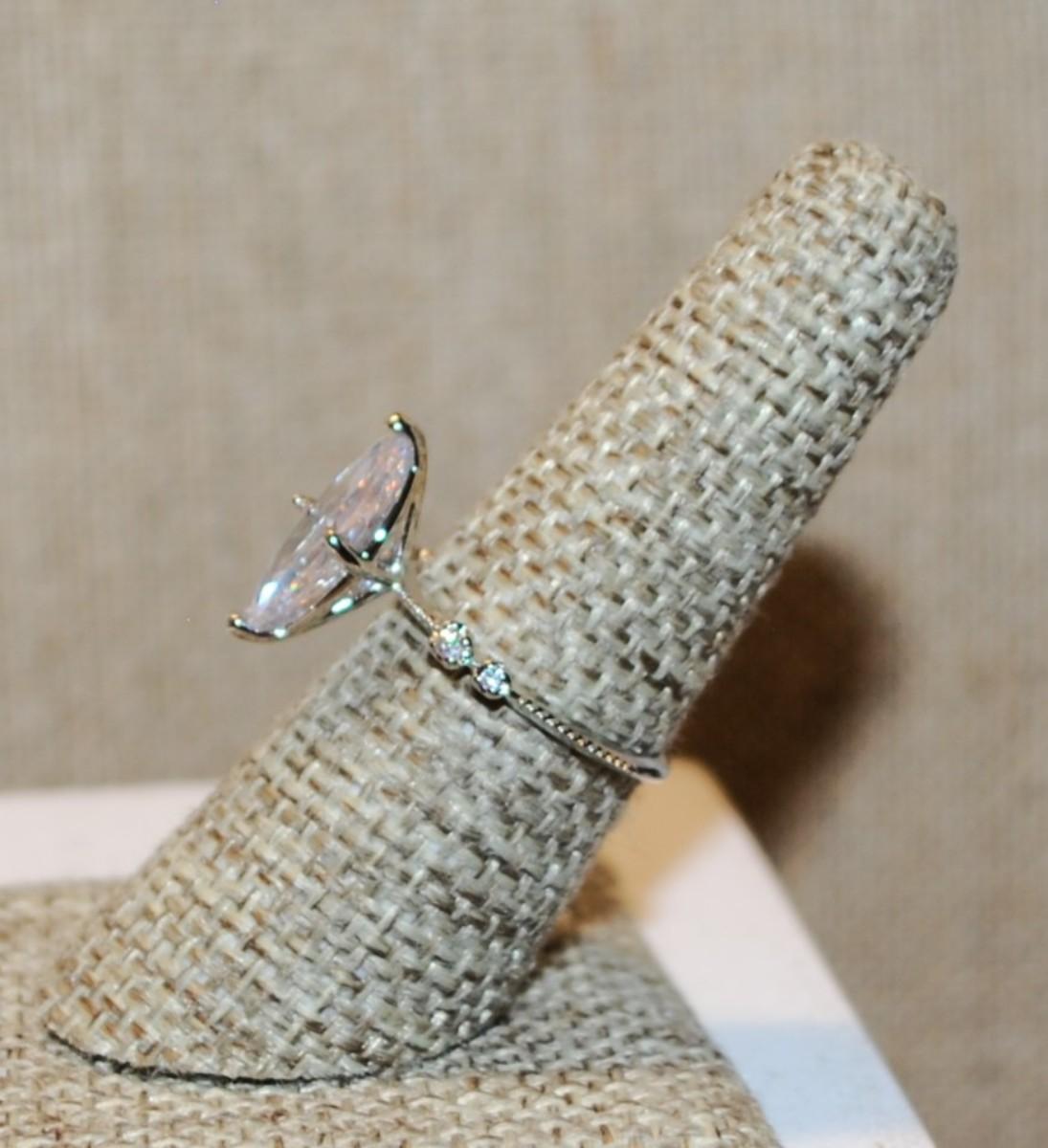 Size 7 Marked .925 Highrise Marquise Cut Stone Ring with 4 Tiny Stone Accents on a Silver Band (2.5g)