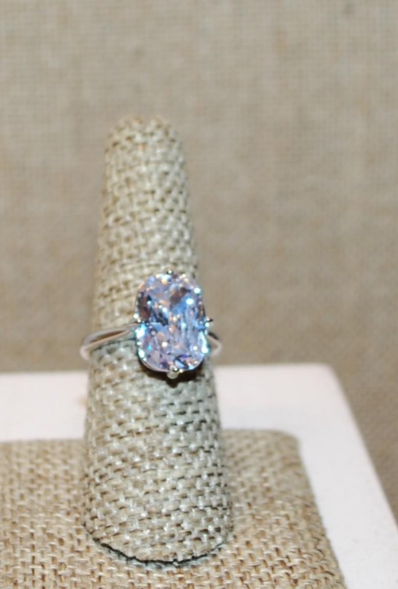 Size 7¼ Marked .925 Large Single Cushion Cut Clear Stone Ring on a Silver Band (5.0g)