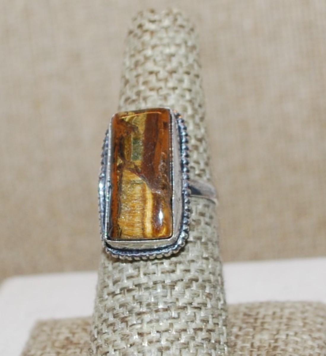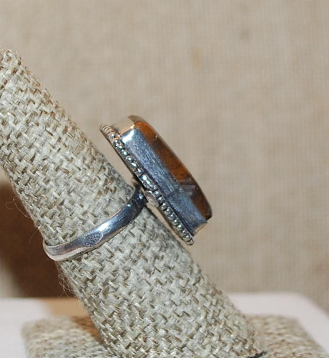 Size 7 Marked .925 Long Rectangle TIGER EYE Gemstone Ring on a Silver-Plated Band (6.0g)