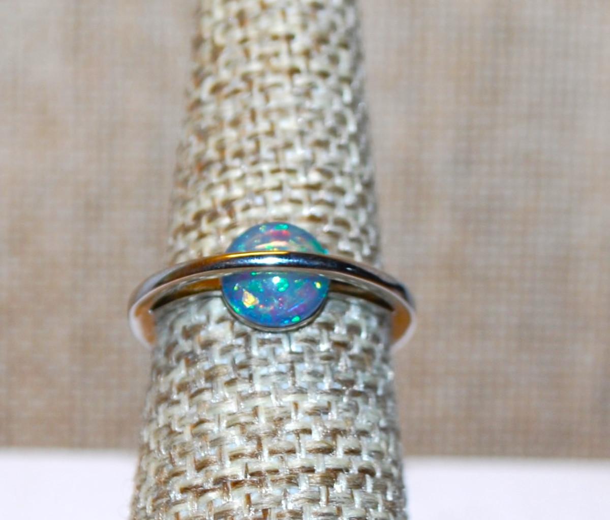 Size 7¼ Marked .925 "Opal in Orbit" Style Ring with Silver Band (2.2g)