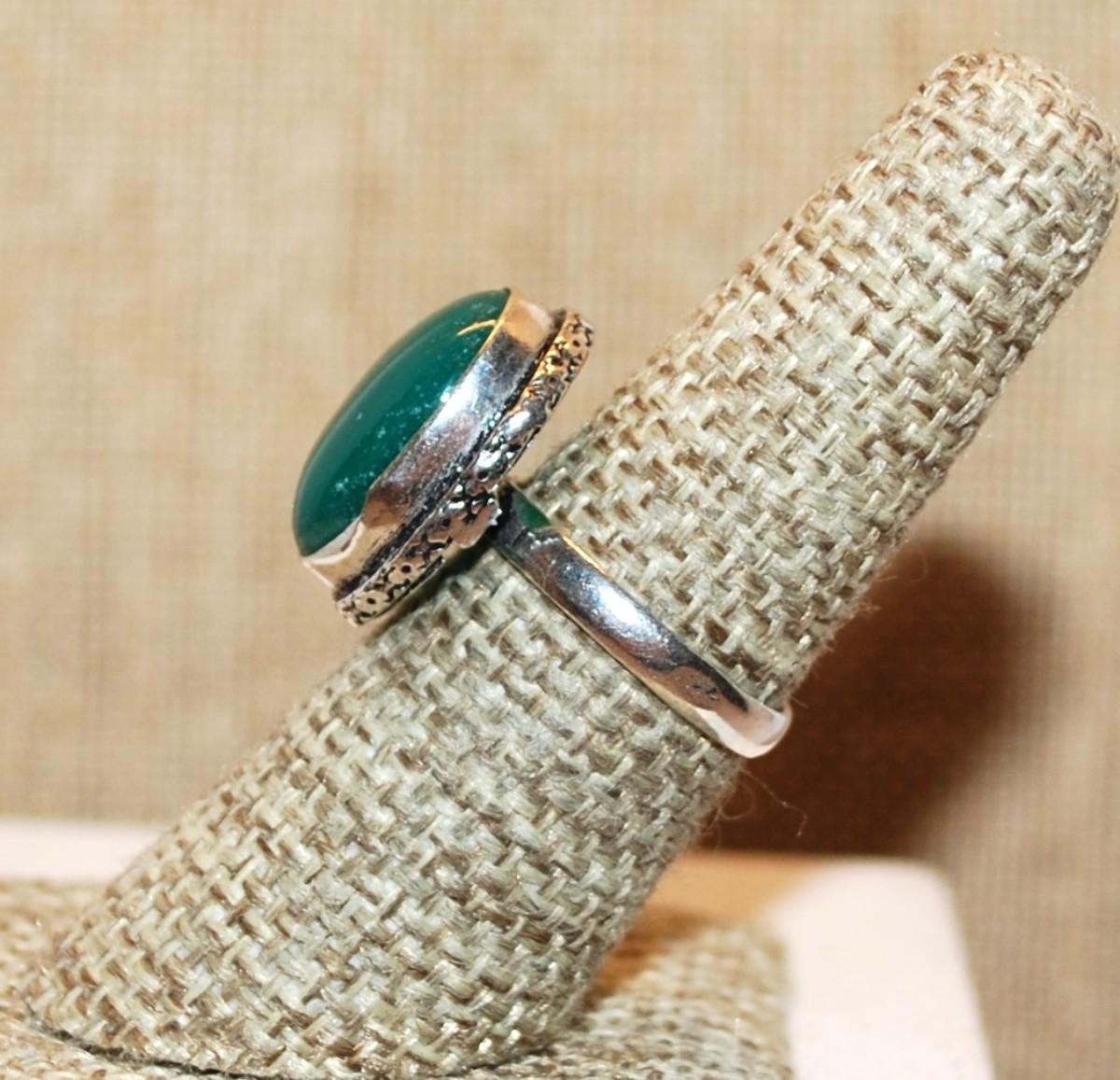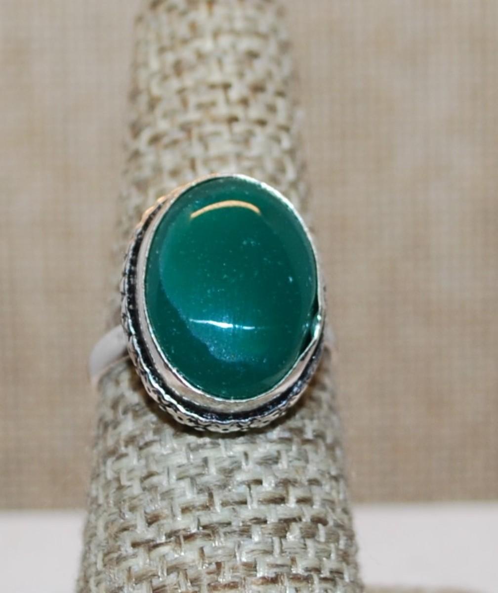 Size 7 Marked .925 Opaque GREEN CABOCHON Gemstone Ring on a Silver-Plated Band (4.6g)