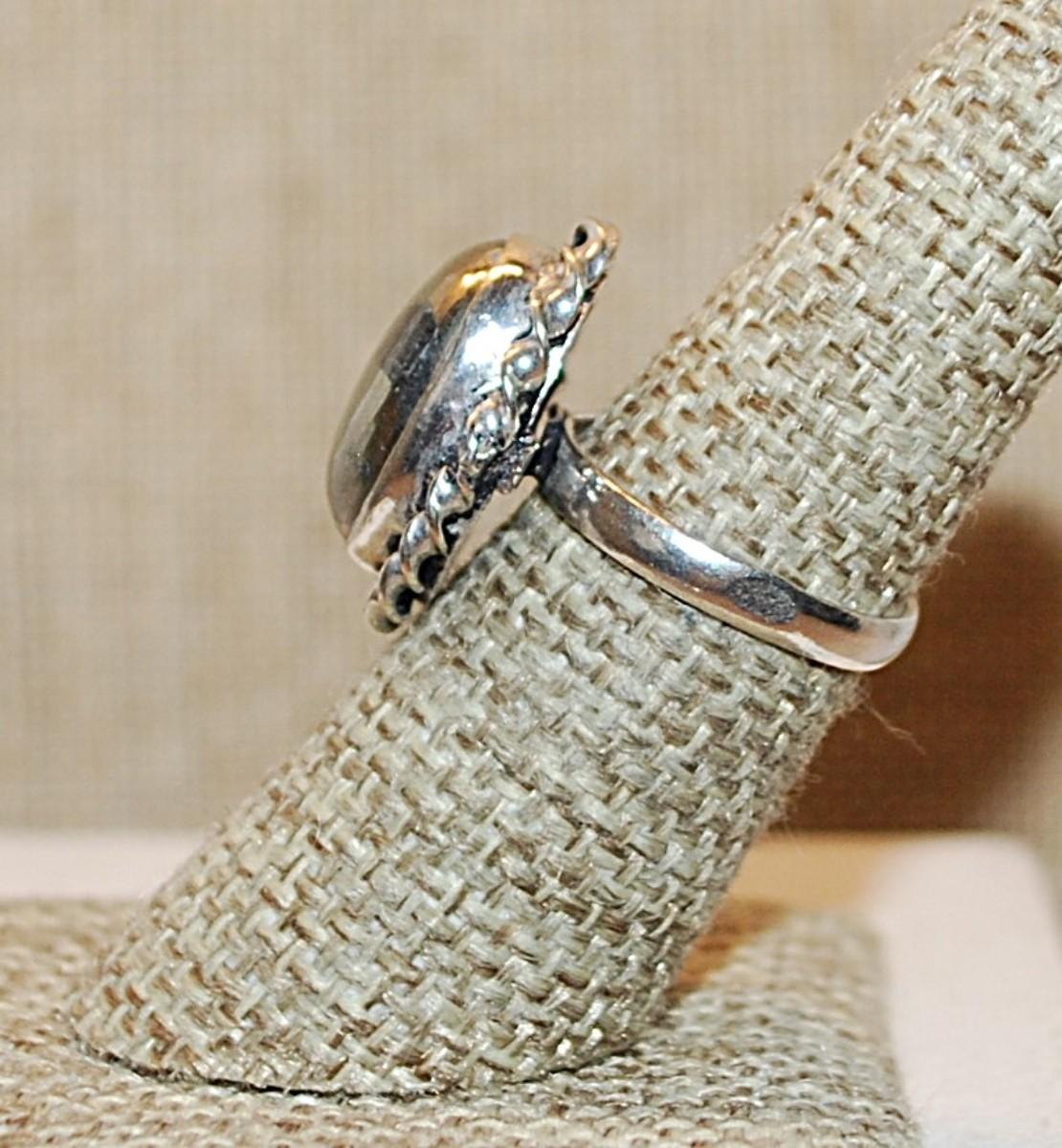 Size 7 Marked .925 Oval Shaped & Swirled Rope Surround GOLD PYRITE Gemstone Ring on a Silver-Plated Band (6.0g)