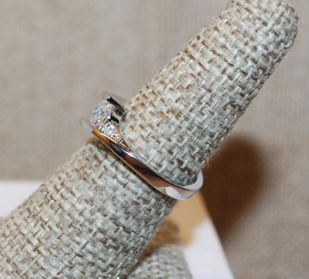 Size 7½ Marked .925 Overlap Setting & Single Round Main Stone Ring with Side Accents on a Silver SPLIT BAND (2.8g)