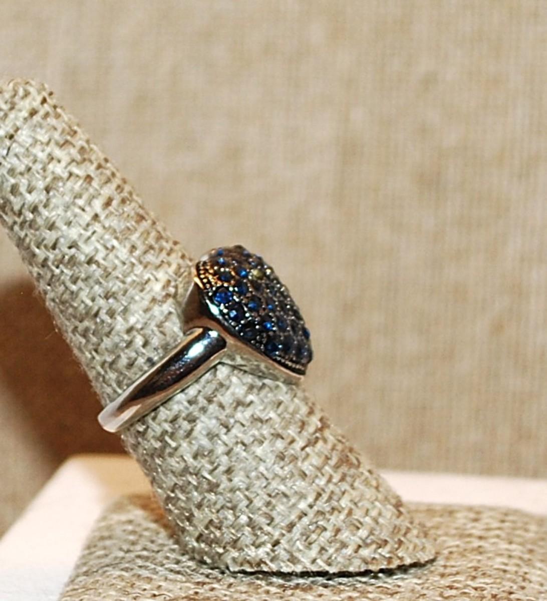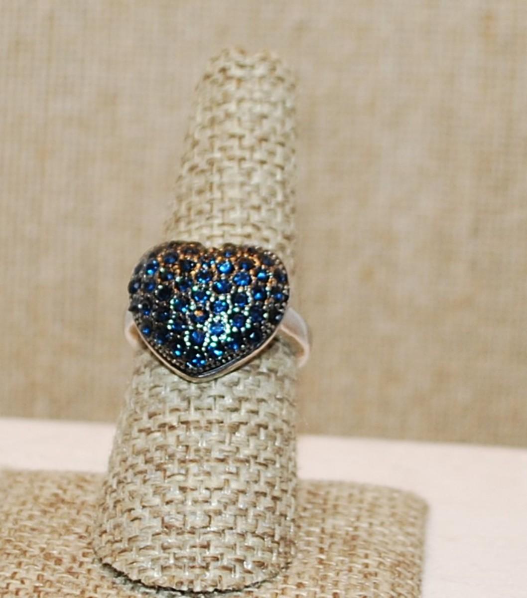 Size 7 ½ Marked .925 "Puffy" HEART Shaped Ring Embedded with Full Layer of Deep Blue Accent Stones on a Silver Band (6.4g)