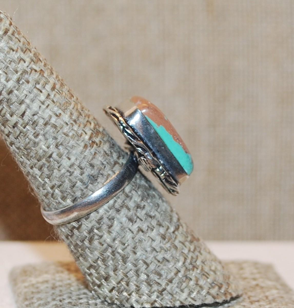 Size 7½ Marked .925 Rectangle Shaped CLAY & BLUE AGATE Gemstone Ring with Silver-Plated Band (5.2g)